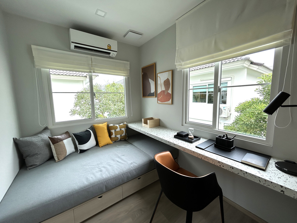 House for rent, Villaggio 2 Srinakarin - Bangna project, beautifully decorated, good atmosphere, lots of usable space , convenient transportation, near Mega Bangna Price 80,000 baht / month Land 57.8 sq m, area 153 sq m (not including outside space) 4 bedrooms, 3 bathrooms 1 living room, 1 kitchen 2 parking spaces, ready to install a car charging station. EV Complete furniture and electrical appliances Monthly garden maintenance service Ready to move in 18 January 2026 Contract period 1 year. *** Take care throughout the lease term. *** Contact Patsy M. Contact number Line: BooBird