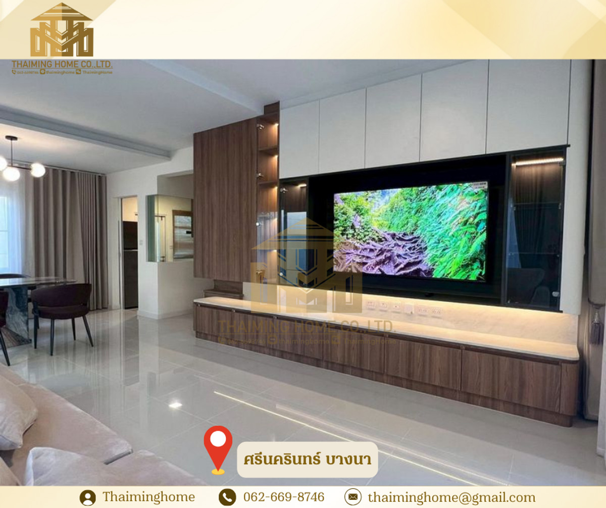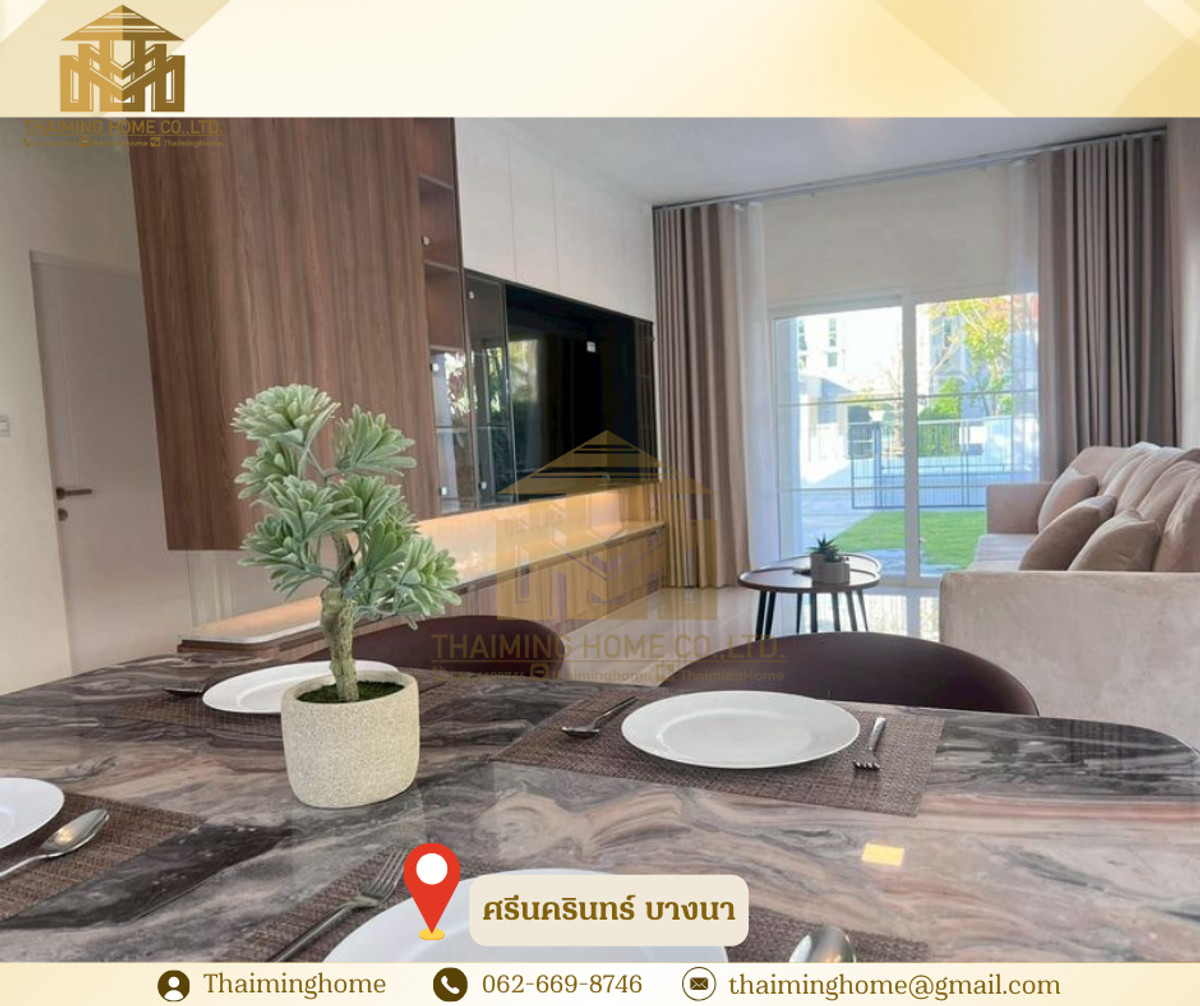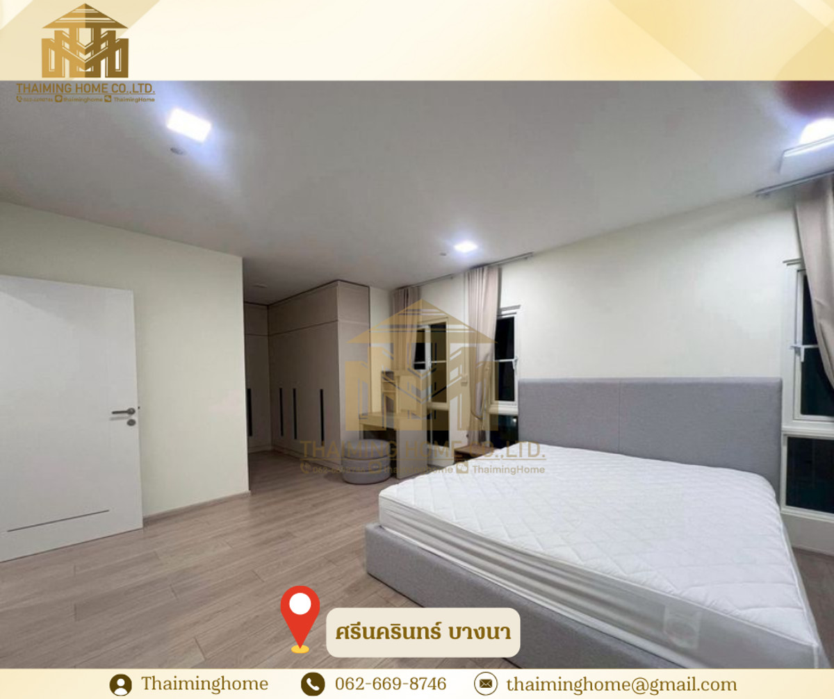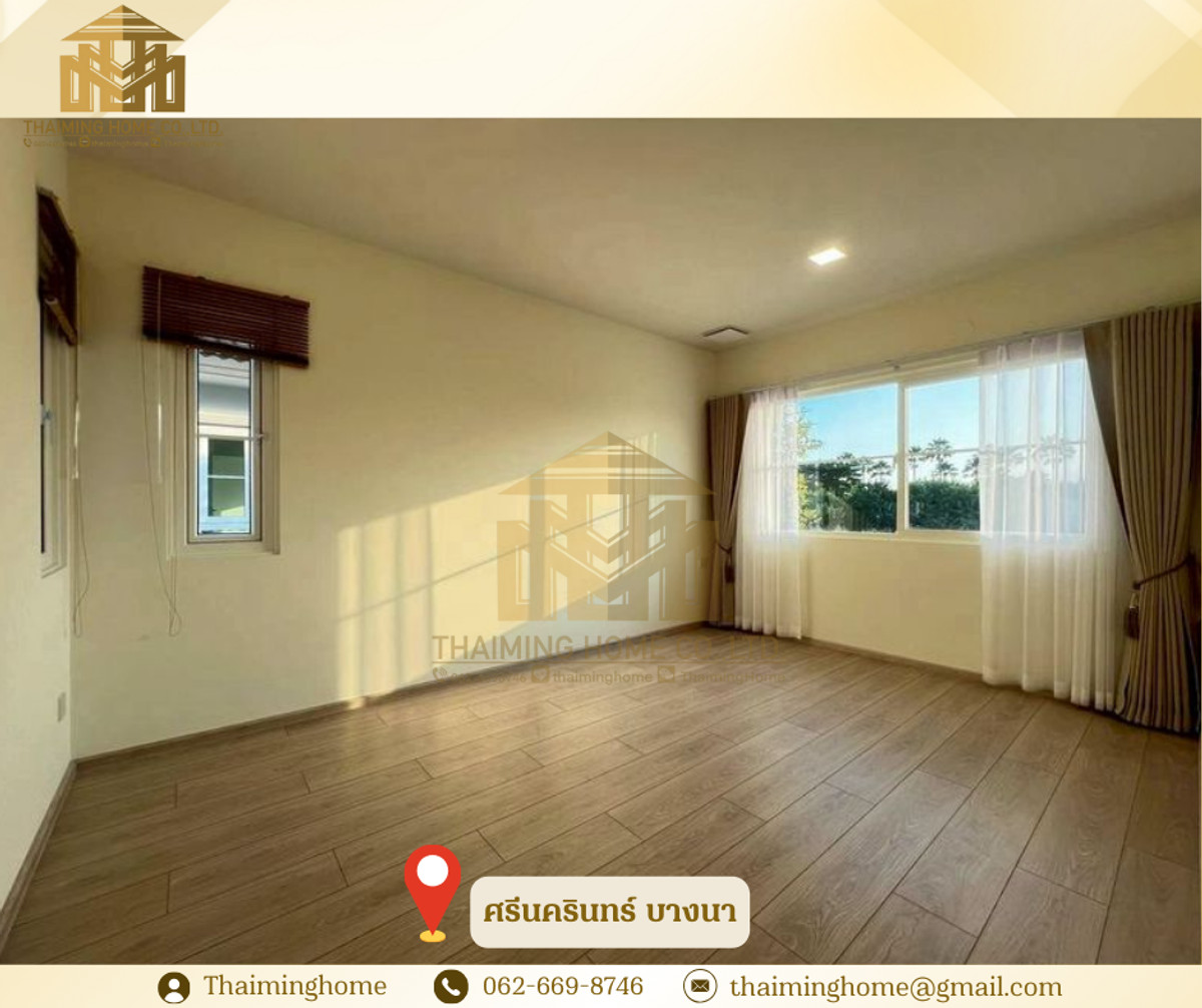 Details - Detached house / Usable area 153 sq.m. - Land area 68 sq.wa. - 4 bedrooms, 3 bathrooms - Parking for up to 4 cars - Fully furnished with furniture and appliances - Free common area fees, internet and garden maintenance - Pet friendly Nearby places - D-PREP International School - Bangkok Patana School - Concordian International School - Berkeley International School - International School - Thai-Singapore International School (TSIS) - St. Andrews International School 107 - St. Joseph Bangna International School (IP) - Wellington College Bangkok - Thai Nakarin Hospital - Sikarin Hospital - Prince Suvarnabhumi Hospital - Mega Bangna - Central Bangna - Seacon Square Srinakarin Rental Conditions: - 1-year contract - 2-month security deposit - 1-month advance payment - Special discount until 2025: 75,000 THB/month - Rent for 2026: 85,000 THB/month ---------------------------------------- บริษัท ไทยหมิง โฮม จำกัด Thaiming Home Co.,Ltd. 泰明房园 房产公司 ----------------------- Contact ติดต่อ : Contact number Contact : Contact number คุณหมิง(中文) Line ID: thaiminghome Line ID: @thaiminghome https://lin.ee/PkkHwYv Wechat : ThaimingHome E-mail : Contact email -----------------------