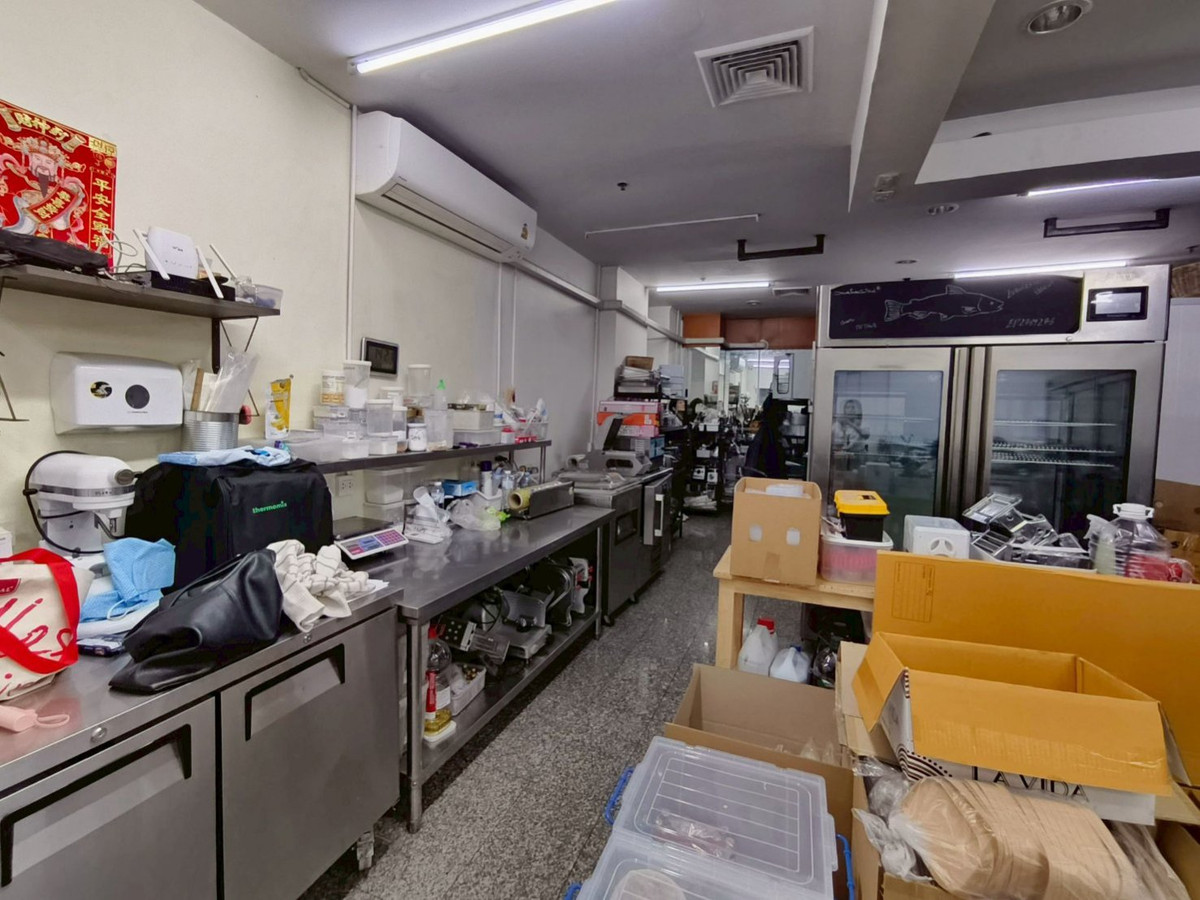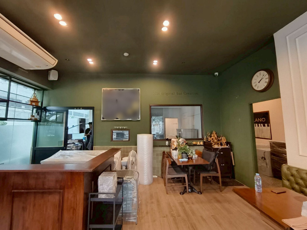 Area Size: 227 sq.m. Room Dimensions: Width 17 meters x Depth 18.5 meters Condition: Fully Fitted and ready for operation. Flooring and partitions are installed. The unit is in good condition and features large glass windows that allow for natural light. Dining and Kitchen Zones: Includes a spacious, separated kitchen area equipped with a ventilation system, exhaust hood, stainless steel sink, and standard gas system. Restrooms: Private, separate Male and Female restrooms located within the unit. Parking: Free parking privileges for 2 cars. Rental Terms Rental Rate: 400 THB per sq.m. Total Rent: 90,800 THB/month Lease Contract: Minimum 3 years Security Deposit: 3 months Utilities: Electricity 7 THB/unit, Water 20 THB/unit