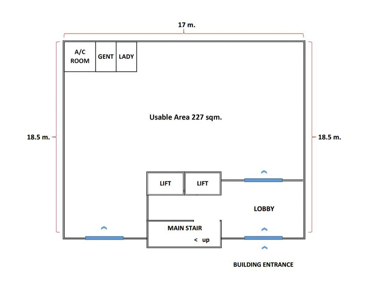Area Size: 227 sq.m. Room Dimensions: Width 17 meters x Depth 18.5 meters Condition: Fully Fitted and ready for operation. Flooring and partitions are installed. The unit is in good condition and feat