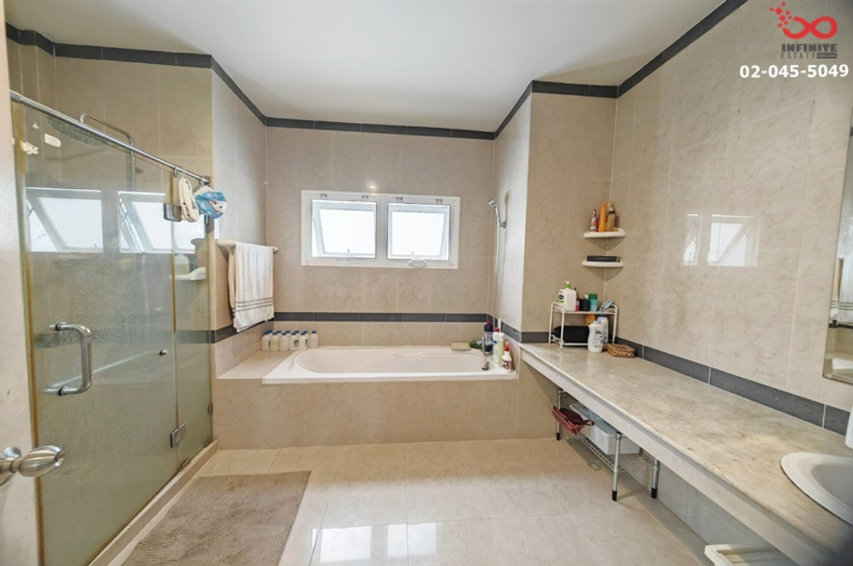 Contact: Mr. Jess Contact number office: Contact number Project name: Jiratip Nuanchan Location: Soi Nuanchan 26, Nuanchan Road, Khlong Kum Subdistrict, Bueng Kum District, Bangkok 10230 Area: 135.6 square wah, usable area 262 square meters Number of rooms: 3 bedrooms, 5 bathrooms, living room, kitchen, maids room Decoration: 4 air conditioners, 3 kilowatt solar cells, additional roof, tiled garage, able to park up to 4 cars in the house, built-in kitchen. There is a maids room + separate en-suite bathroom. Beautiful, large garden Parking: 4 cars Common areas: security, clubhouse, fitness, playground, garden Property facing direction: North Review: Single house, large plot of land behind the edge of the project. The road in front of the house is very wide. The house is large with a usable area of 262 sq m. Each bedroom has its own bathroom. The master bedroom has a bathtub + walk-in closet. Beautifully decorated and ready to move in. There is a garden area on the side. The project is next to Nuanchan Road , nearby places. : Shopping and Lifestyle Places - The Paseo Town Ramkhamhaeng - Marketplace Sukhapiban - Fashion Island - Crystal Park Educational Institutions - Kasetsart University Bang Khen - Ramkhamhaeng University - Rattana Bundit University(RBAC) - Lertlah School Hospital - Kasemrad Hospital Ramkhamhaeng - Synphaet Hospital - Nawawet Hospital Transportation - BTS Pink Line Watcharapol Station / Ramintra Km. 6 - MRT Yellow Line Lat Phrao 71 Station
