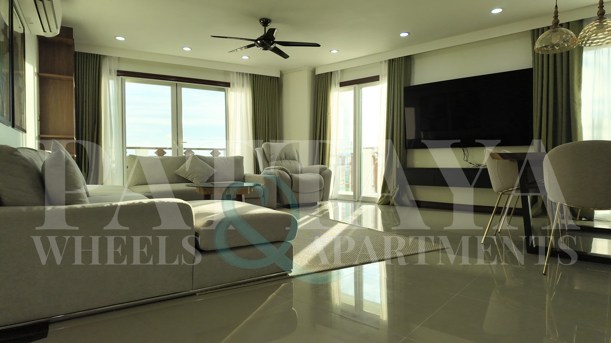 🏡 Spacious 2-Bedroom Corner Condo with Sea & City Views Royal Hill Resort, Pattaya | 147 sqm | 5th Floor For sale: an exclusive corner 2-bedroom condominium in the well-known Royal Hill Resort, Pattaya. Located on the 5th floor, this unit offers an impressive 147 sqm of living space, which is exceptionally rare for this area. ✨ The apartment features a luxury renovation using premium materials, including natural wood elements and handcrafted details, creating a refined and elegant living atmosphere. The condo boasts a very large and bright living room with spectacular panoramic views of: • the sea, • Pattaya city, • Pattaya Park, making it a perfect space for relaxation, entertaining, and enjoying sunsets. The property includes two bathrooms, both finished with high-quality materials and premium sanitary fittings, designed for maximum comfort and functionality. • 4 high-quality inverter air conditioners, energy-efficient and quiet • Triple-glazed windows, providing excellent noise insulation and a peaceful indoor environment The condo is sold fully furnished and fully equipped with appliances, ready for immediate move-in or rental. 📍 Prime Location Royal Hill Resort is a well-maintained condominium with a strong reputation, convenient location, and consistent rental demand. Price: 12 900 000 THB WhatsApp / LINE Contact number