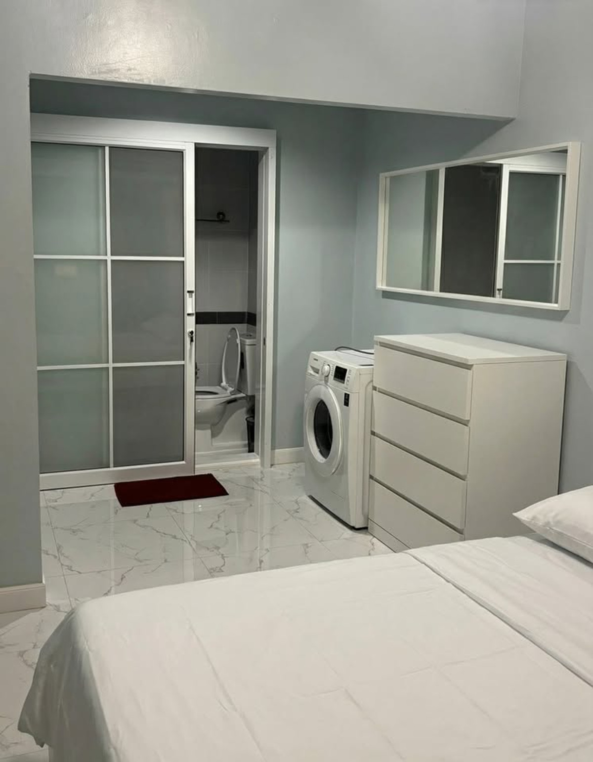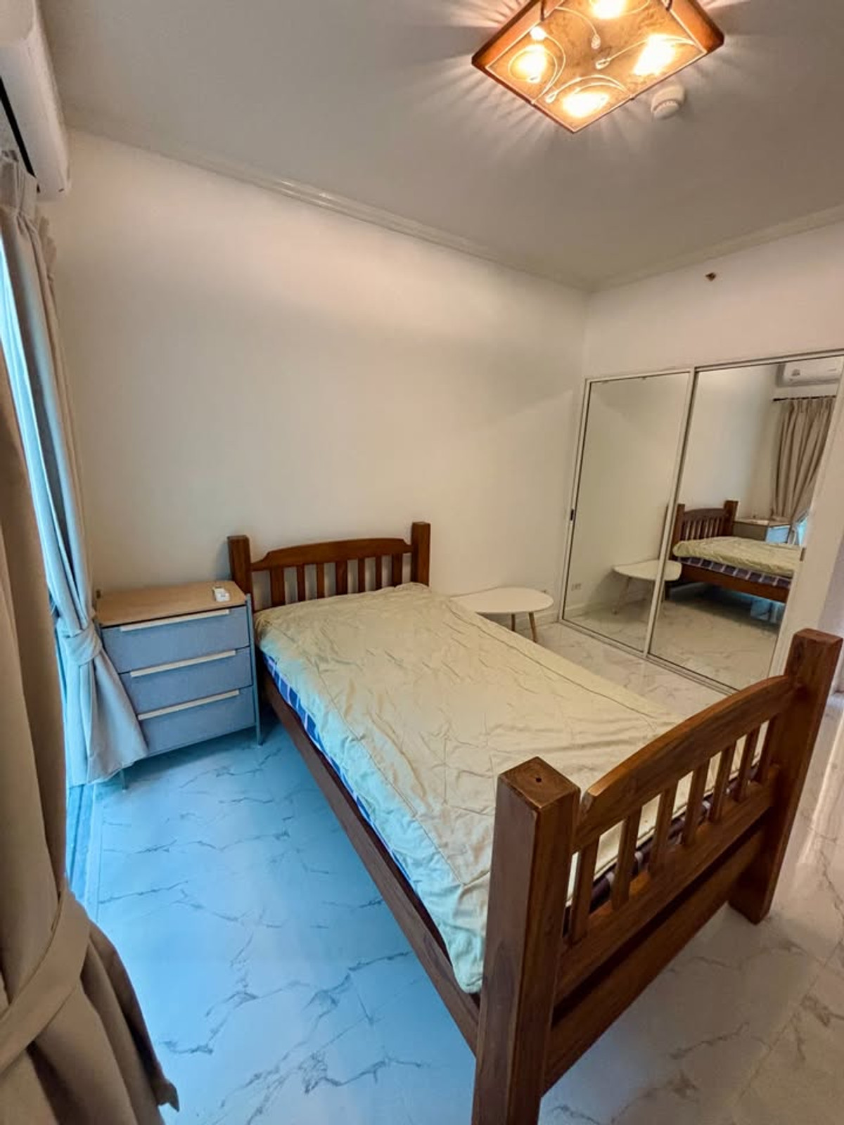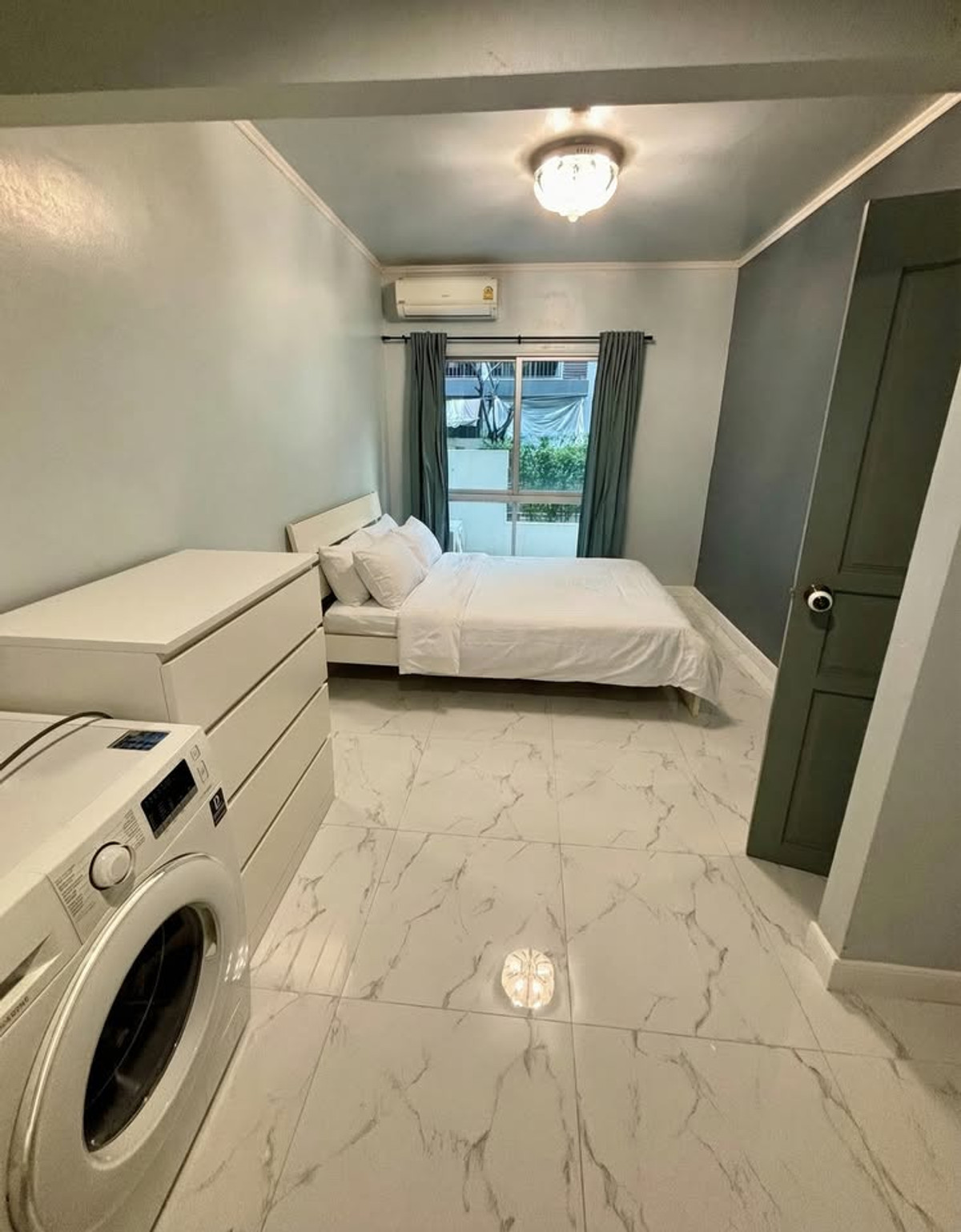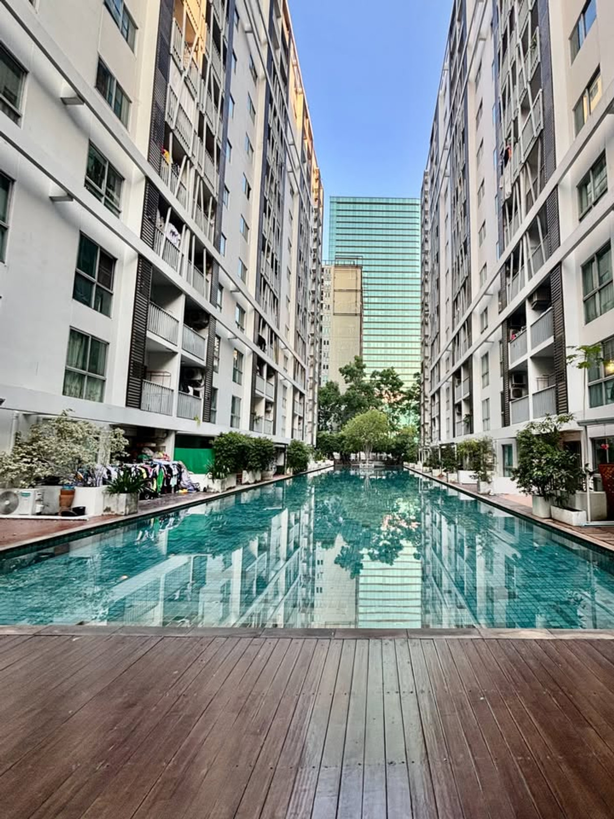 Condo for rent, A Space Asoke Ratchada, near MRT Rama 9 ***Price 20,000 THB/month (rent includes common area fees)*** 1st floor / 72 sq m / 2 bedrooms, 2 bathrooms * Furniture included: Bed / Mattress / Wardrobe / Dressing table / Coffee table and chair / Built-in cabinets Appliances included: Refrigerator / Air conditioner / Microwave / Washing machine / Water heater Amenities: Swimming pool / Fitness center / Seven Eleven / Key card access / Garden / Parking 24-hour security and CCTV / Key card access Nearby Landmarks: 1. Central Rama 9 (walking distance) / 2. Robinson Ratchada / 3. Esplanade / 4. Fortune Town (walking distance) / 5. G Land (walking distance) / 6. Big C Ratchadaphisek Real Estate Services: Property Listing, Sales, and Rentals Tel: Contact number Mi Line: @easy_connect (https://lin.ee/Q0caib6) WhatsApp: Contact number WeChat: easy_connect1 EC0045
