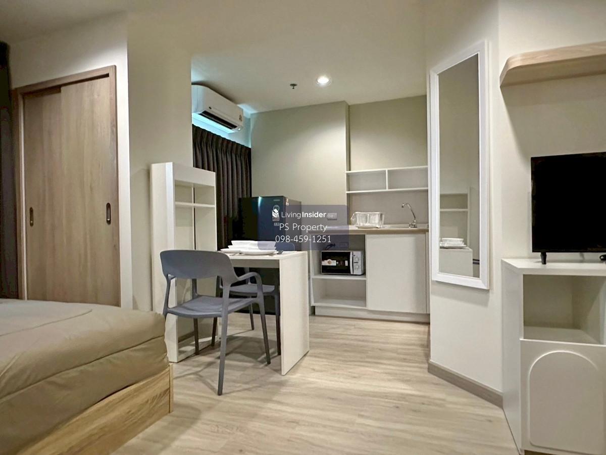 Price: 7,200 baht / month Size: 23 sqm. Floor: 17 Room type: ONE BEDROOM Facilities: Convenience store, CCTV, key card Access, Swimming pool, Fitness Center, laundry room, 24hrs security guard, Furniture: TV, Sofa, Storage, Shelves, Air conditioners, Cabinets, Built-in Wardrobes, Microwave, Refrigerator, Washing Machine. Fully Built-in, fully furnished! Near BTS, near the expressway, ready to move in! Interested please contact: 📞Call center: Contact number 📱Hotline: Contact number 📲Whatsapp: Contact number 🖱️Line: @psproperty https://lin.ee/d8bpOBs Website: https://www.ps-property.co.th/