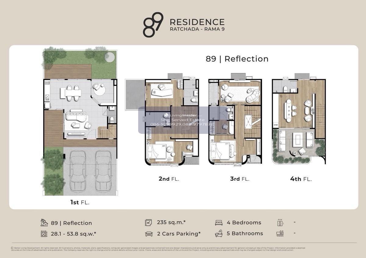 △ 89 Residence Ratchada–Rama 9 150,000 baht/month New detached house Ready to move in immediately Project 89 Residence Ratchada-Rama 9 • 4 bedrooms • 5 bathrooms • Land area 36 sq m • Usable area 235
