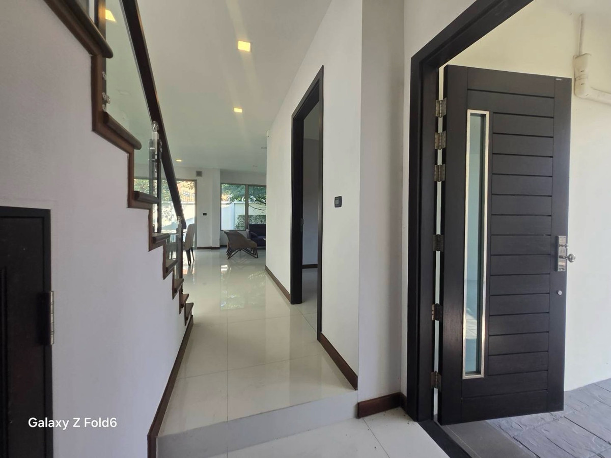 ===== Perfect Masterpiece Village Chaengwattana - Ratchapruek 💎In the brand Property Perfect 💎AIR FACTORY SYSTEM, innovative air circulation system, 3-layer dust protection in a nearby air quality system. Hospital clean room 💎TIGHTNESS SYSTEM, seamless home innovation 💎THERMAL INSULATED SYSTEM, energy-saving home innovation 💎DURABILITY STRUCTURE & EASY TO SERVICE Strong home innovation. Easy to take care of 💎LUXURY HARMONY DESIGN, innovation in Japanese style luxury homes 💎GREEN & SMART CITY, innovative, environmentally friendly, modern house Single house near SISB International School ‼️ Rent only 120,000 baht per month, put down 360,000 baht, you can move in ☘️ ✨Single house size 104.9 square wah ✨4 bedrooms, 5 bathrooms, 1 living room, 1 kitchen, 1 maids bedroom - maids bathroom ✨2 parking spaces, garden area around the house 🚘 Entry and exit in 2 ways. Chaengwattana-Chaiyaphruek Road, Road 345 🚩Project facilities: -clubhouse swimming pool, fitness, activity room) -Park, exercise area, playground, -easy card system for entering and exiting the project, CCTV, 24-hour security guard -SISB International School in front of the village, community mall in Chaengwattana Chamber of Commerce Road 🚩Nearby places -Central Chaengwattana-Market, Community Mall In Chamber of Commerce Road - Suankularb Nonthaburi School, SISB International School -World Medical Hospital, Pakkret Hospital-The Crystal PTT Interested in viewing the house Contact number Tata