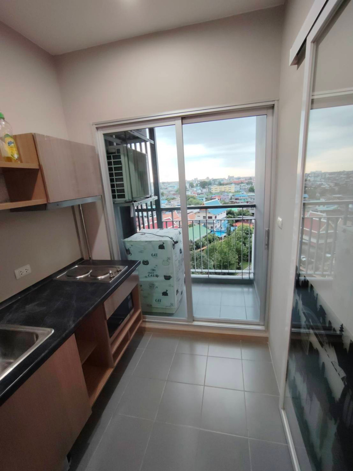 With furniture + washing machine, only 11,000 baht, 9th floor, Building B, size 31 sq m., 1 bedroom, 1 bathroom, with washing machine. Bed, clothes, sofa, refrigerator, air conditioner, refrigerator,