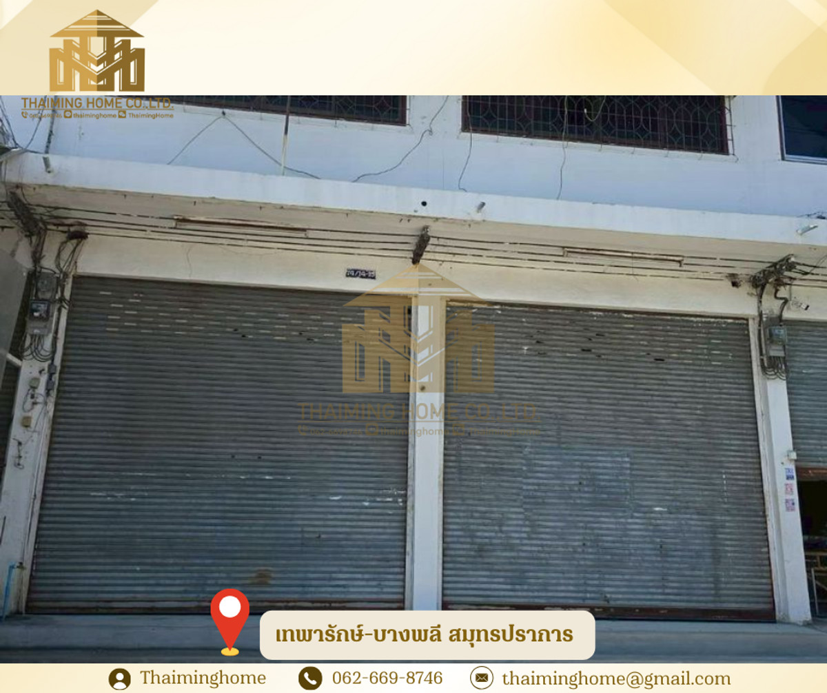 Commercial building for rent, Thepharak, Bang Phli, Samut Prakan (Property Code TT4-011225) Details - 2-story shophouse, 2 units, 8 meters wide, 14 meters deep - Water and electricity bills paid accor