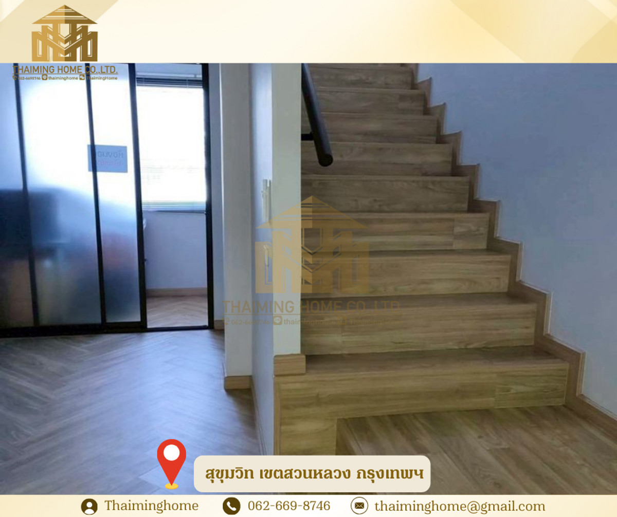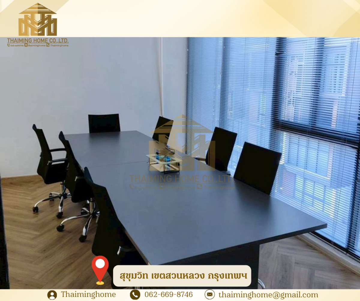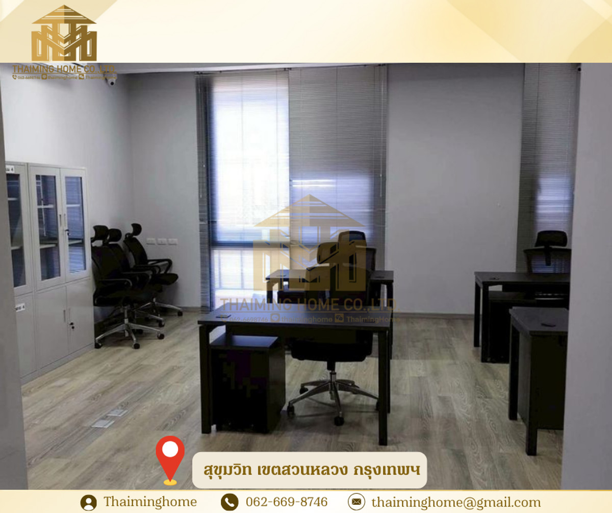 5-Story Home Office for Sale with Tenant, in the Heart of Sukhumvit, Suan Luang District, Bangkok (Property Code TT4-021225) Details: - Sold with existing 3-year lease. - Currently leased to a business. - Land size: 27 sq.w. - Usable area: 380 sq.m. - Building width: 5.70 meters - Functions: - 6 offices - 3 bathrooms - 3 kitchen areas - 3 private parking spaces, with additional parking available within the project. - Private elevator connecting all floors. - Fully furnished with appliances: - Desks, chairs, and filing cabinets - Air conditioning in every room and on every floor. Project Amenities: - 24-hour security system - CCTV cameras - Lush green common areas Nearby Amenities - Shopping Malls: Seacon Square, Central Bangna, Mega Bangna - Hospitals: Samitivej Srinakarin, Vibharam - Convenience Stores and Restaurants: Just a few steps to 7-Eleven and numerous restaurants - Only 300 meters from Thailand Post Office - Only 3 km from BTS On Nut - Close to Sukhumvit 62 and 50 expressways - Connects to the Motorway for easy access to Suvarnabhumi Airport - Convenient transportation Sale Conditions - Selling Price: 19,900,000 THB --------------------------------- บริษัท ไทยหมิง โฮม จำกัด Thaiming Home Co.,Ltd. 泰明房园 房产公司 ----------------------- Contact ติดต่อ : Contact number Contact : Contact number คุณหมิง(中文) Line ID: thaiminghome Line ID: @thaiminghome https://lin.ee/PkkHwYv Wechat : ThaimingHome E-mail : Contact email -----------------------