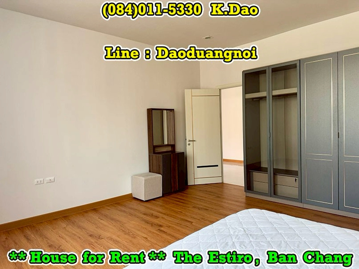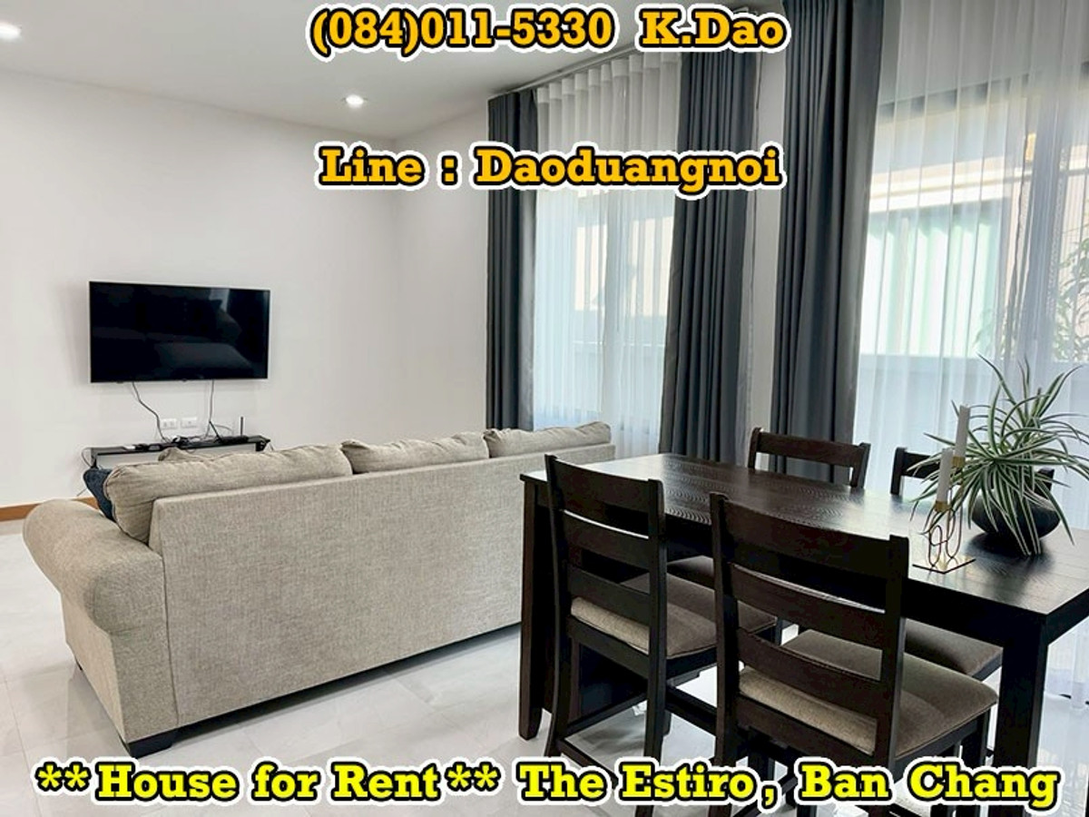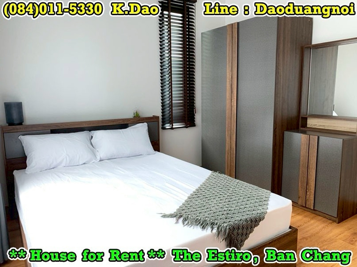 *** House for Rent *** Located in the new village. The Estiro, Ban Chang House with Nordic Style Catty-Corner from Garden International School Entrance the village from Phla Road (Tessaban 34) Location : https://maps.app.goo.gl/v6zA1ymqNaFrcg2o8 1-Storey House Land Area 58.2 Sqr.wah House Area 153 Sq.m. 3 Bedrooms 2 Bathrooms 1 Living Room 1 Kitchen 1 Office Area 2 Parking +++ Rental Fee 20,000 Baht +++ Private Luxury Clubhouse & Facilities - Club House - Co-Working - Fitness - Jacuzzi - Swimming Pool - Sauna Room - Health Yard - Kid Zone - 24 HR Security - Double Gate - Airflow System Nearby Landmark - Garden International School (GIS) - Rayong English Program School (REPS) - Anuban Rakpasa School - U-Tapao International Airport - Queen Sirikit Naval Hospital - Banchang Hospital - Phayun Beach - Phla Beach - Motorway Contact for renting with Dao Tel. : (084)011-5330 Line ID : Daoduangnoi WhatsApp : Contact number https://www.facebook.com/ThePastelProperty