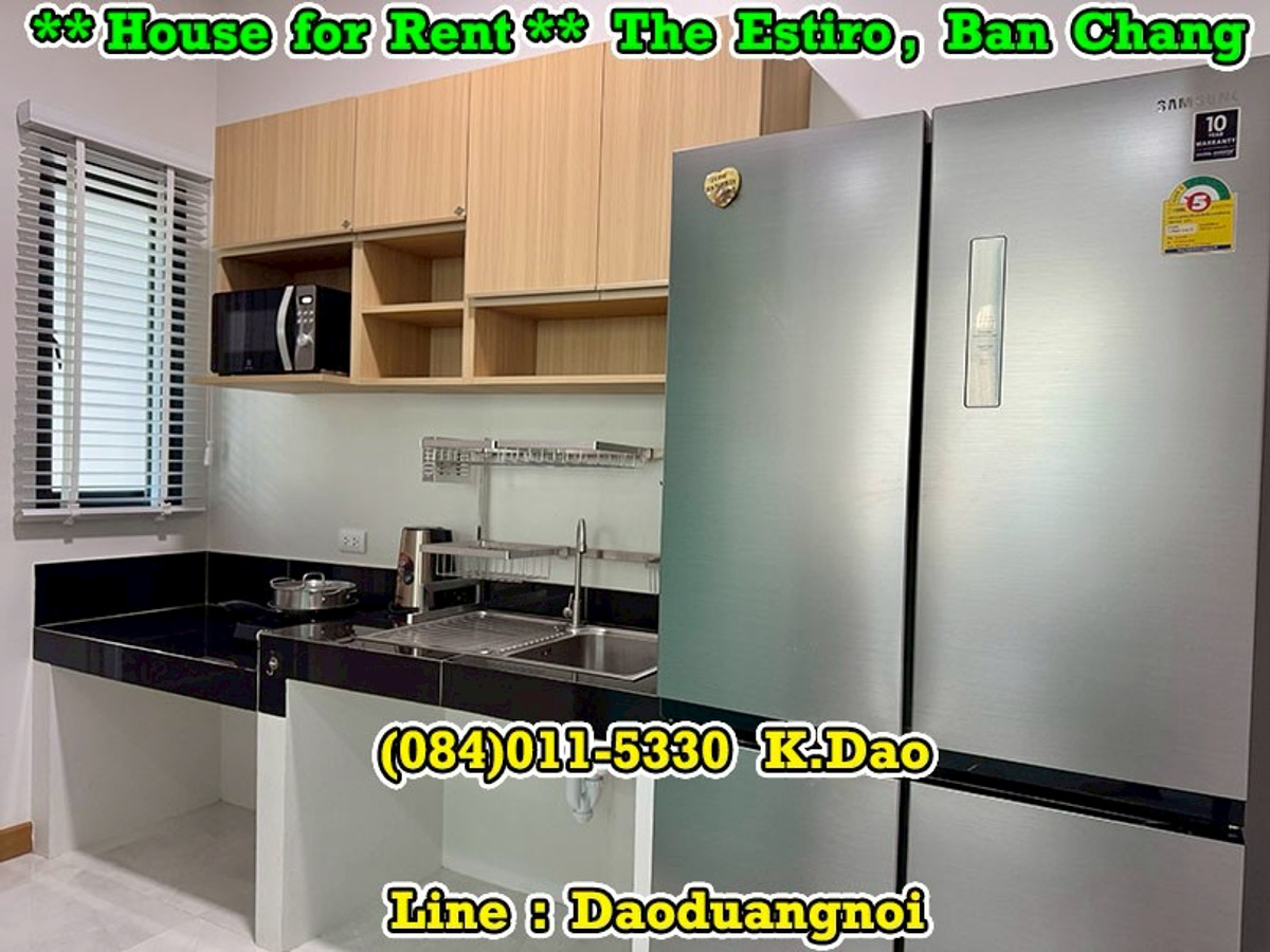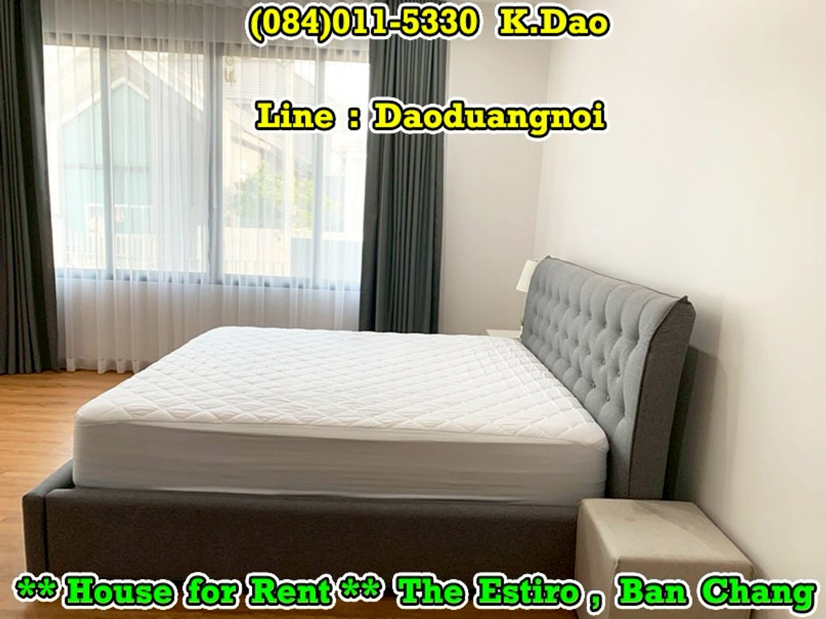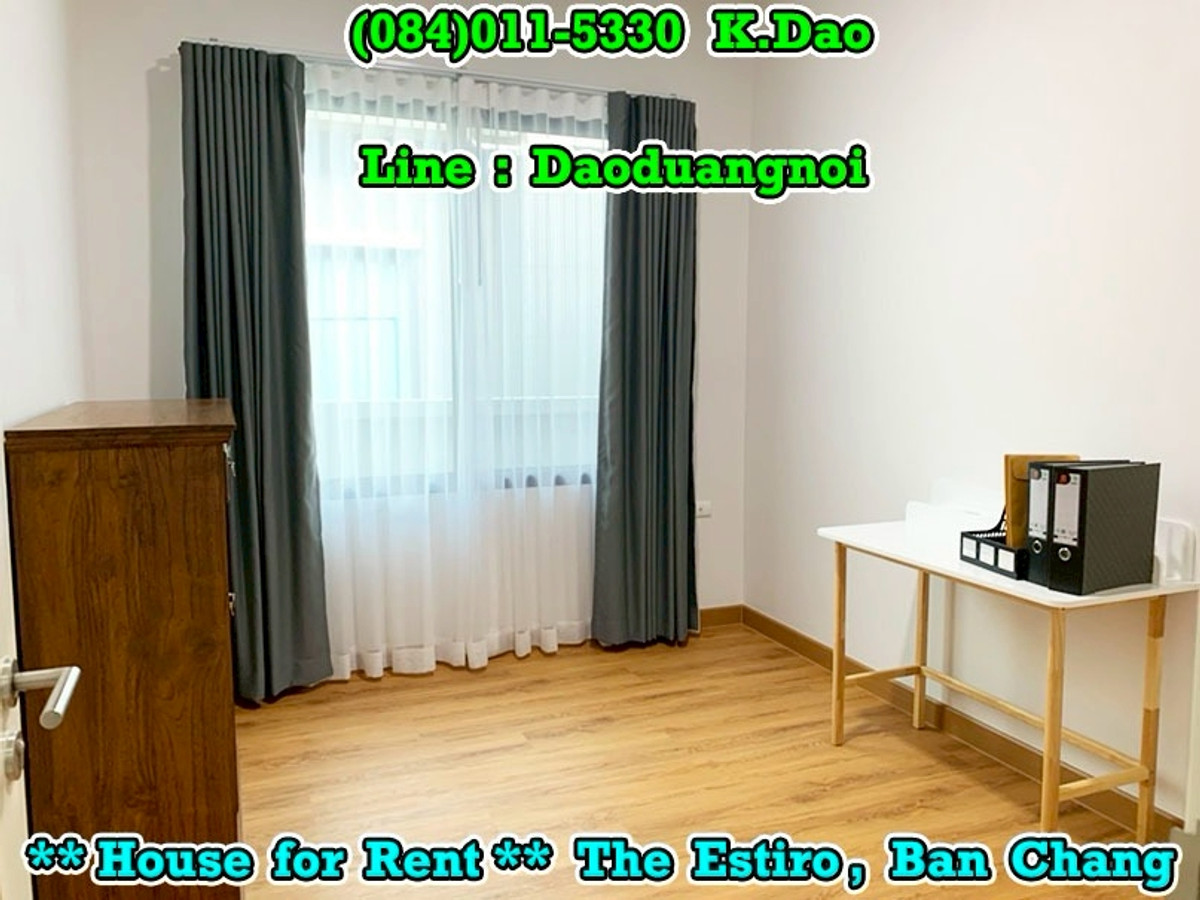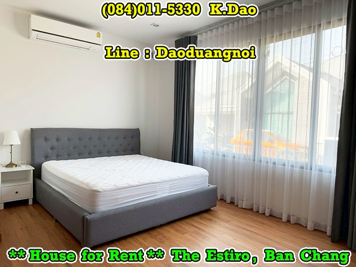 *** House for Rent *** Located in the new village. The Estiro, Ban Chang House with Nordic Style Catty-Corner from Garden International School Entrance the village from Phla Road (Tessaban 34) Location : https://maps.app.goo.gl/v6zA1ymqNaFrcg2o8 1-Storey House Land Area 58.2 Sqr.wah House Area 153 Sq.m. 3 Bedrooms 2 Bathrooms 1 Living Room 1 Kitchen 1 Office Area 2 Parking +++ Rental Fee 20,000 Baht +++ Private Luxury Clubhouse & Facilities - Club House - Co-Working - Fitness - Jacuzzi - Swimming Pool - Sauna Room - Health Yard - Kid Zone - 24 HR Security - Double Gate - Airflow System Nearby Landmark - Garden International School (GIS) - Rayong English Program School (REPS) - Anuban Rakpasa School - U-Tapao International Airport - Queen Sirikit Naval Hospital - Banchang Hospital - Phayun Beach - Phla Beach - Motorway Contact for renting with Dao Tel. : (084)011-5330 Line ID : Daoduangnoi WhatsApp : Contact number https://www.facebook.com/ThePastelProperty