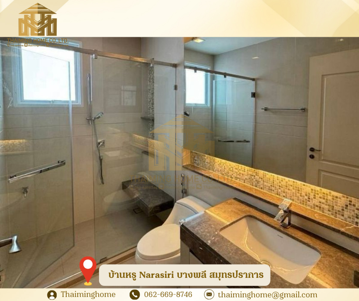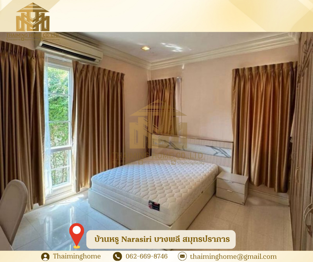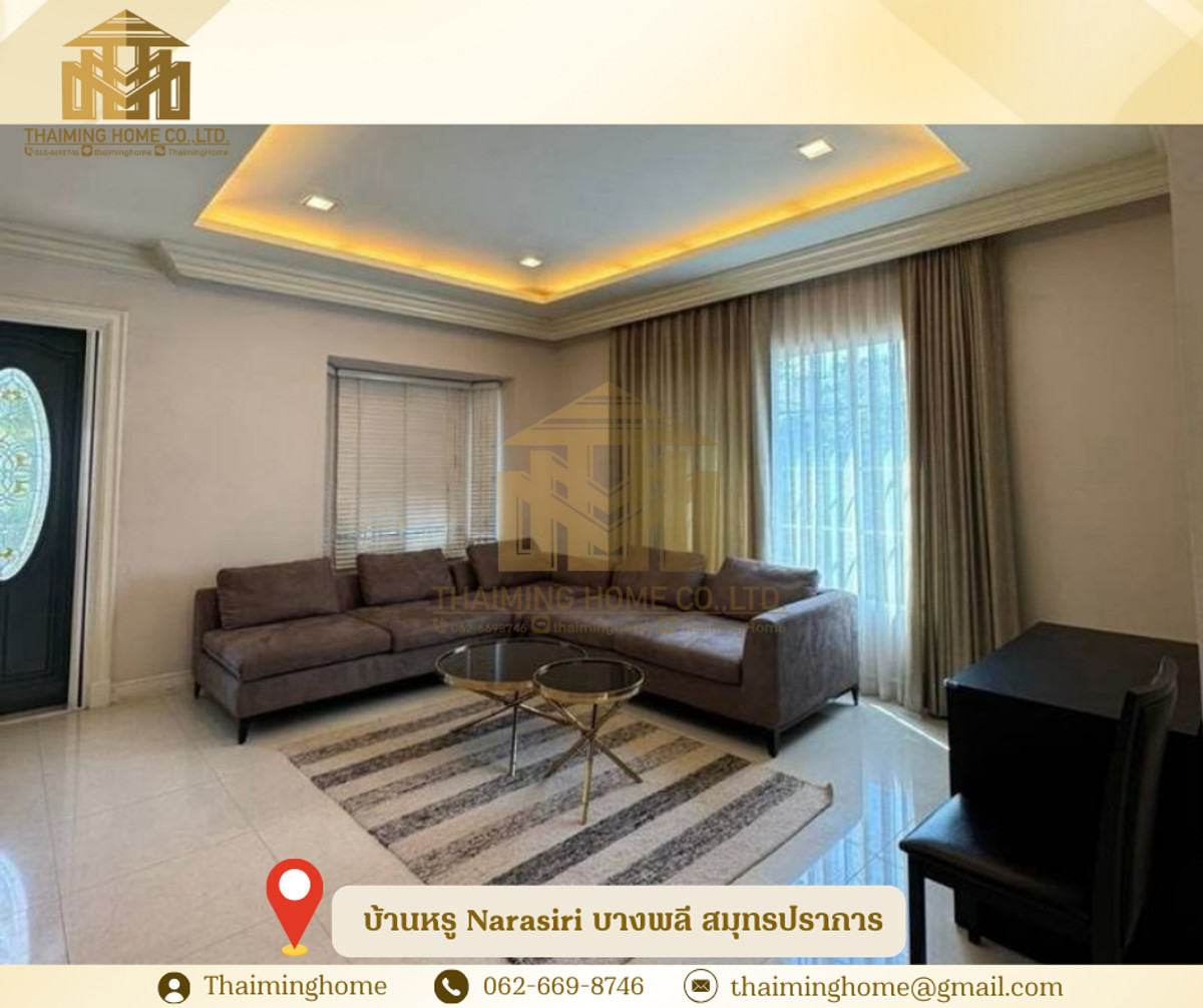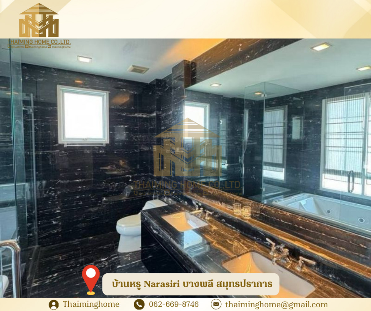 Luxury house for rent/sale, Narasiri Bang Phli, Samut Prakan (Property Code TH4-151225) Details - Land area: 124 sq.wah - Usable area: 375 sq.m - 4 bedrooms - 5 bathrooms - 1 living room - 1 family room - 1 dining room - 1 pantry - 1 Thai kitchen - 1 multipurpose room - 1 storage room - 1 maid's room - 4 parking spaces - South-facing house, fully built-in. - 1. Includes furniture - 2. Installed awnings for the carport and front and back of the house - 3. Tiled walkways around the house and tiled back yard - 4. Extended balcony outside the master bedroom - 5. Air conditioners - 6. The project installed 6 air conditioners, and the homeowner added 5 more, totaling 11 units: 1 in the wardrobe, 2 in the living room, 1 in the Thai kitchen, and 1 in the maid's room. - 6. Replaced the main front door with teak wood from Vision Glas. - 7. 65-inch TV, LG refrigerator with water dispenser, ice, and crushed ice. Nearby Locations Nearby Locations 1. Golf courses: Lake Wood, Windmill, Muang Kaew, Thana City, Green Valley, Thai Country Club 2. Shopping malls: Central Bangna, Mega Bangna, Market Village, Lotus, HomePro, Makro, Gourmet Market, and Foodland 3. Universities: Assumption University (ABAC), Verso International School, Thana City Country Club, Bangkok Patana International School, American School of Bangkok at Green Valley, Concordian International School 4. Kanchanaphisek Ring Road 5. Suvarnabhumi Airport 6. Sikarin Hospital, Sommutiwej Srinakarin Hospital Rental Conditions: - Minimum 1-year contract - 2-month security deposit - 1-month advance payment - Monthly rent: 250,000 THB - Sale price: 45 million THB (Transfer fees not included) --------------------------------- บริษัท ไทยหมิง โฮม จำกัด Thaiming Home Co.,Ltd. 泰明房园 房产公司 ----------------------- Contact ติดต่อ : Contact number Contact : Contact number คุณหมิง(中文) Line ID: thaiminghome Line ID: @thaiminghome https://lin.ee/PkkHwYv Wechat : ThaimingHome E-mail : Contact email -----------------------