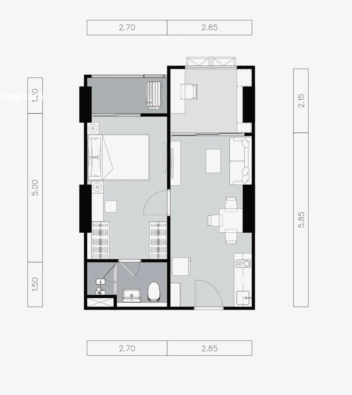 Supalai Tyme 1-bed plus 44.5 sq m., 16th floor, back, position near the elevator.