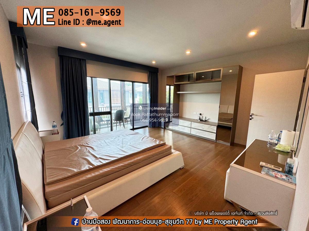 - Area 73 SQW, 250 SQM. - 4 Bedrooms, 5 Bathrooms - 4 Parking Spaces - Fully furnished . Rent: 200,000 baht/month Minimum 1-year contract . Make appointment ME Property Agent Call : Contact number Mook (TH/ENG/JP) LINE : @me.agent IG : mepropertyagent TIKTOK : meagent YouTube : @meagent5131 https://www.facebook.com/MEpropertyAgent . Project Amenities: - Swimming pool - Fitness center - Clubhouse - 24-hour security and CCTV . Nearby Places - Seacon Square 5.5 km - Paradise Park 6.7 km - The Mall Bangkapi 8.6 km - Central Bangna 8.6 km - The Nine Center Rama 9 10 km - Mega Bangna 12 km - Vibharam Hospital 5 km - Samitivej Srinakarin Hospital 6.5 km - Thainakarin Hospital 8.5 km - Sikarin Hospital 8.9 km - Bangkok Hospital 12.5 km - Rama 9 Hospital 13.5 km - Beacon House Yamsaad Pattanakarn 2.7 km - Triam Udom Suksa Pattanakarn School 4.1 km - Bangkok Prep (T77) 9 km - Wellington - Brighton College 9.5 km - Brighton College 10 km - Ekkamai International School 11 km