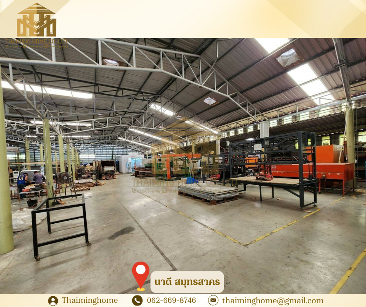🏭 Plant rental ready for immediate production – Samut Sakhon with a total area of 2,400 sq.m. [Property code TW5-141225] ✅ Details - Land with a total usable area of 2,400 square meters. 🏭 Factory building 🏠 Two - story detached house 🛏 5 workers' rooms 🍽 Small cafeteria 🚻 Men's-women's separate bathroom ✔ Have a license. 4 Available ✔ 400 KVA power system around the plant ✔ Water supply + windpipe system around the plant ✔ Water/electricity charges, direct payment to municipalities and water supply ✔ Immediately accessible, without improvement 📍 Good location near hospitals, department stores, and government agencies It is suitable for manufacturing plants, warehouses or business expansion. 🚇 Nearby places - Ban Nadi Subdistrict Health Promotion Hospital. The ocean. - Public Health Service Center. 4th District of Nadi - Central Mahachai - Na Di Subdistrict Municipality ☑️ Terms of purchase/lease 💰 Price is only $85 per square meter. M. - a minimum contract of three years - a deposit of 300,000 baht for equipment, offices, lights, &c. - Three months in advance, one month in. ----------------------------------------------------------------- บริษัท ไทยหมิง โฮม จำกัด Thaiming Home Co.,Ltd. 泰明房园 房产公司 ------------------------- Contact ติดต่อ : Contact number Contact : Contact number คุณหมิง(中文) Line ID: thaiminghome Line ID: @thaiminghome https://lin.ee/PkkHwYv Wechat : ThaimingHome E-mail : Contact email -----------------------------------------------