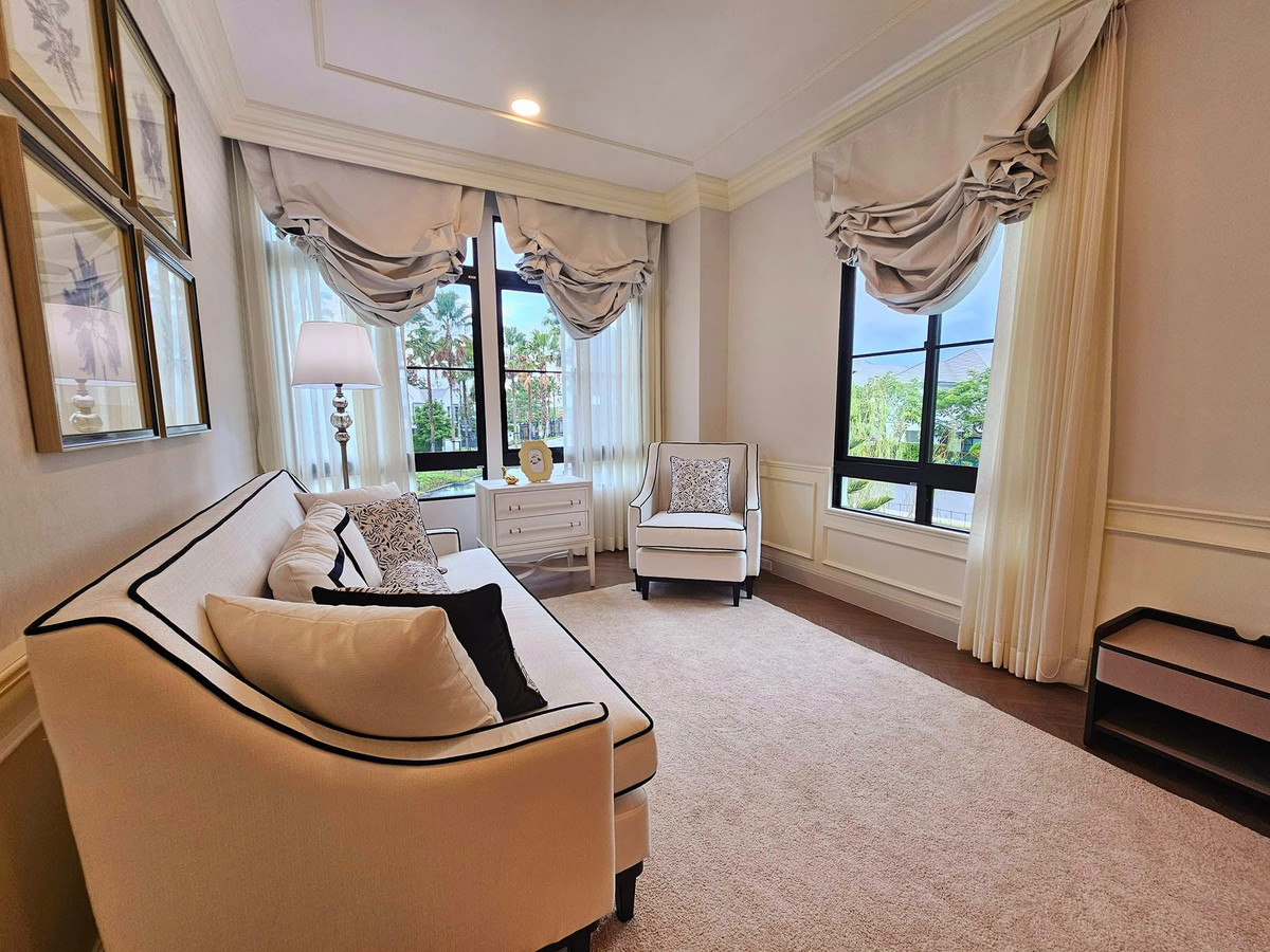 🏡 Sell / Rent 2-story luxury detached house Nantawan Rama 9 – New Krungthepkreetha 🛏 5 bedrooms, 5 bathrooms 🚗 Parking for 8 cars Land 170 sq m. | usable area 650 sq m 💰 Selling price 121,770,000 baht 💰 Rental price 490,000 baht / month 🛋 Fully furnished + electrical appliances Ready to move in !!! Complete amenities - Clubhouse | Swimming pool | Fitness | Co-working Space - Garden & Lake | EV Charger | Security 24 hrs. Contact for more information at Eak Contact number LINE ID: eak_roopngam Click https://line.me/ti/p/23htNStU-F