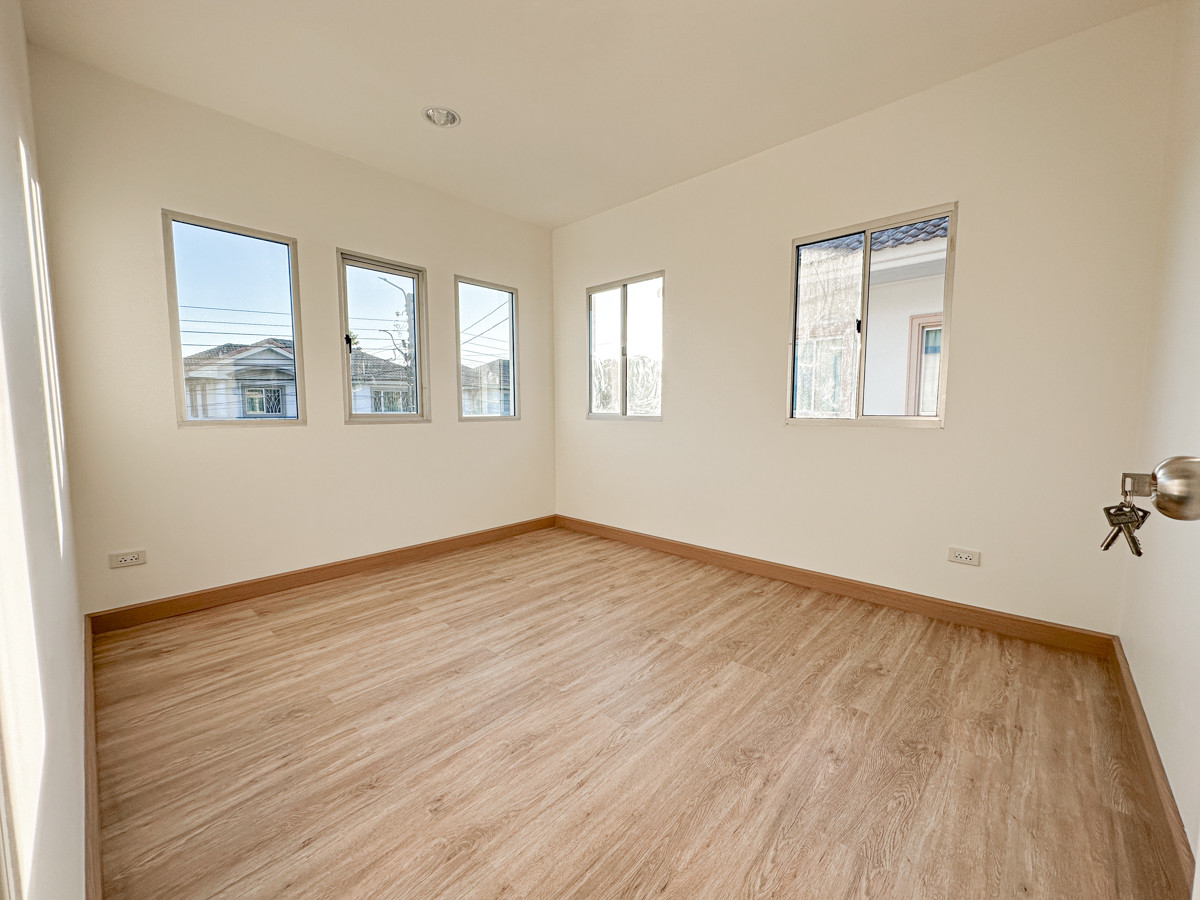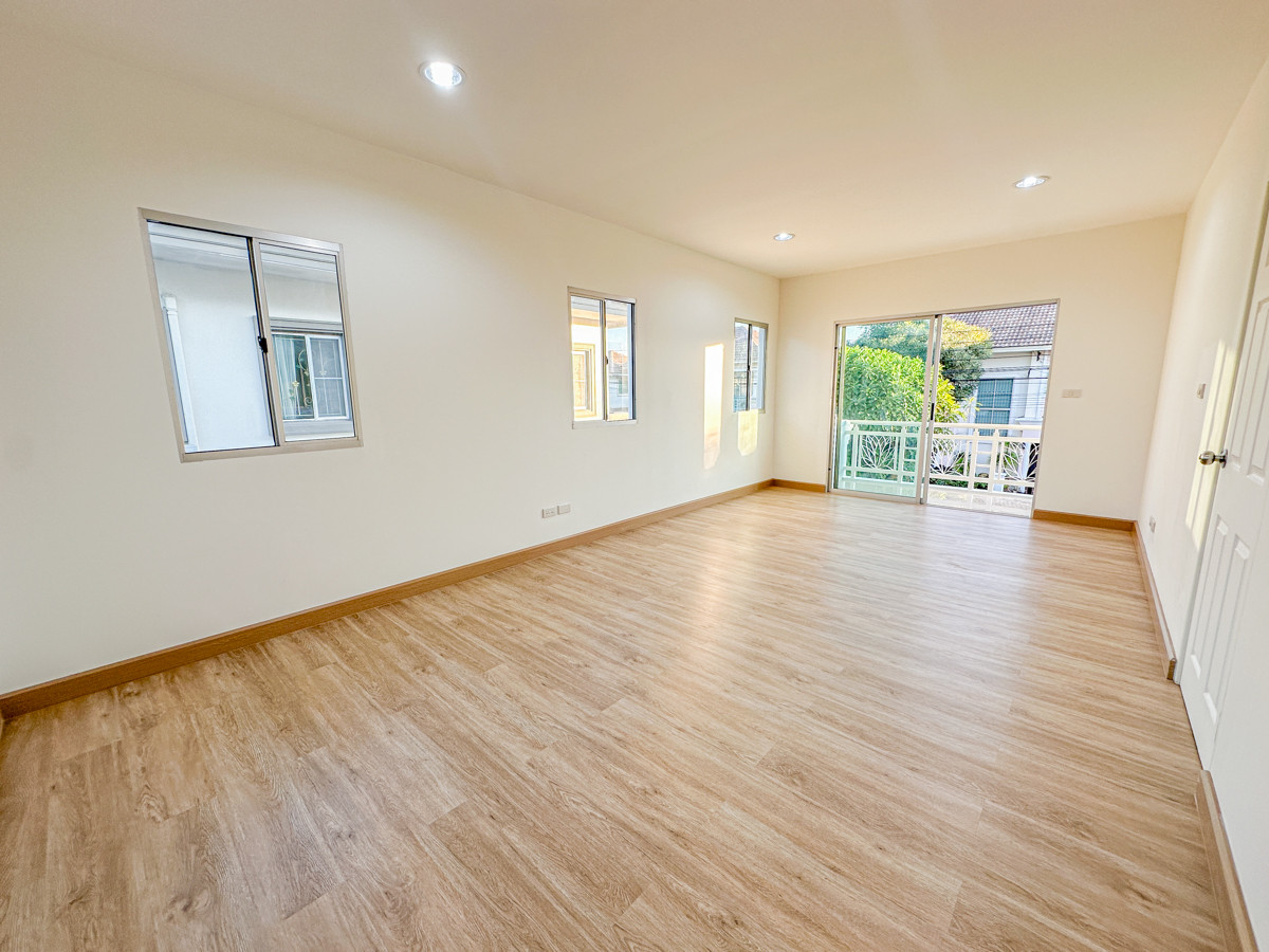 Single house Pruksa Village 5 Wongwaen - Rattanathibet, newly renovated, ready to move in Details - Area 50 sq m - Usable area 150 sq m - 4 bedrooms, 2 bathrooms, 2 parking spaces - 1 living room - 1 kitchen - Front of house facing south Highlights - Renovate - Change new sanitary ware - Pour the floor to increase usable space - 1st floor has a multi-purpose room or modify a room for the elderly - Common fee only 17/sq m can enter and exit by many routes - Khlong Thanon - Kaew In - from Maha Sawat Waterworks Canal - Nakhon Pathom shortcut route - behind Mahidol University Salaya Nearby places - near Central Westgate - near Kasemrad Hospital - near Kasinthorn St. Peter School - Fresh Market (Ritsuk) Khlong Thanon - MRT (Khlong Bang Phai Station) - Expressway M81 (Bang Yai - Kanchanaburi) Contact Contact number