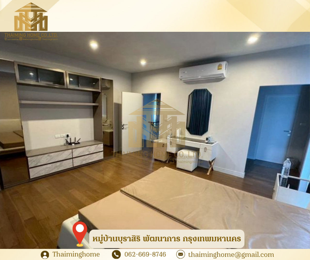 House for Rent in Burasiri Pattanakarn Village, Bangkok (Property Code TH4-191225) Details - Size: 250 sq m - 4 Bedrooms, 5 Bathrooms - Pets allowed - Accepting Chinese and foreign tenants - 1 Maid's room with ensuite bathroom - Parking for 2-4 cars - Fully furnished - Swimming pool - Fitness center - Steam room - Sauna - Jogging track - Playground Nearby Places - Seacon Square 5.5 km - Paradise Park 6.7 km - The Mall Bangkapi 8.6 km - Central Bangna 8.6 km - The Nine Center Rama 9 10 km - Mega Bangna 12 km Rental Conditions - Minimum contract 1-3 years - 2 months security deposit - 1 month advance payment - Rent: 200,000 THB per month --------------------------------- บริษัท ไทยหมิง โฮม จำกัด Thaiming Home Co.,Ltd. 泰明房园 房产公司 ----------------------- Contact ติดต่อ : Contact number Contact : Contact number คุณหมิง(中文) Line ID: thaiminghome Line ID: @thaiminghome https://lin.ee/PkkHwYv Wechat : ThaimingHome E-mail : Contact email -----------------------