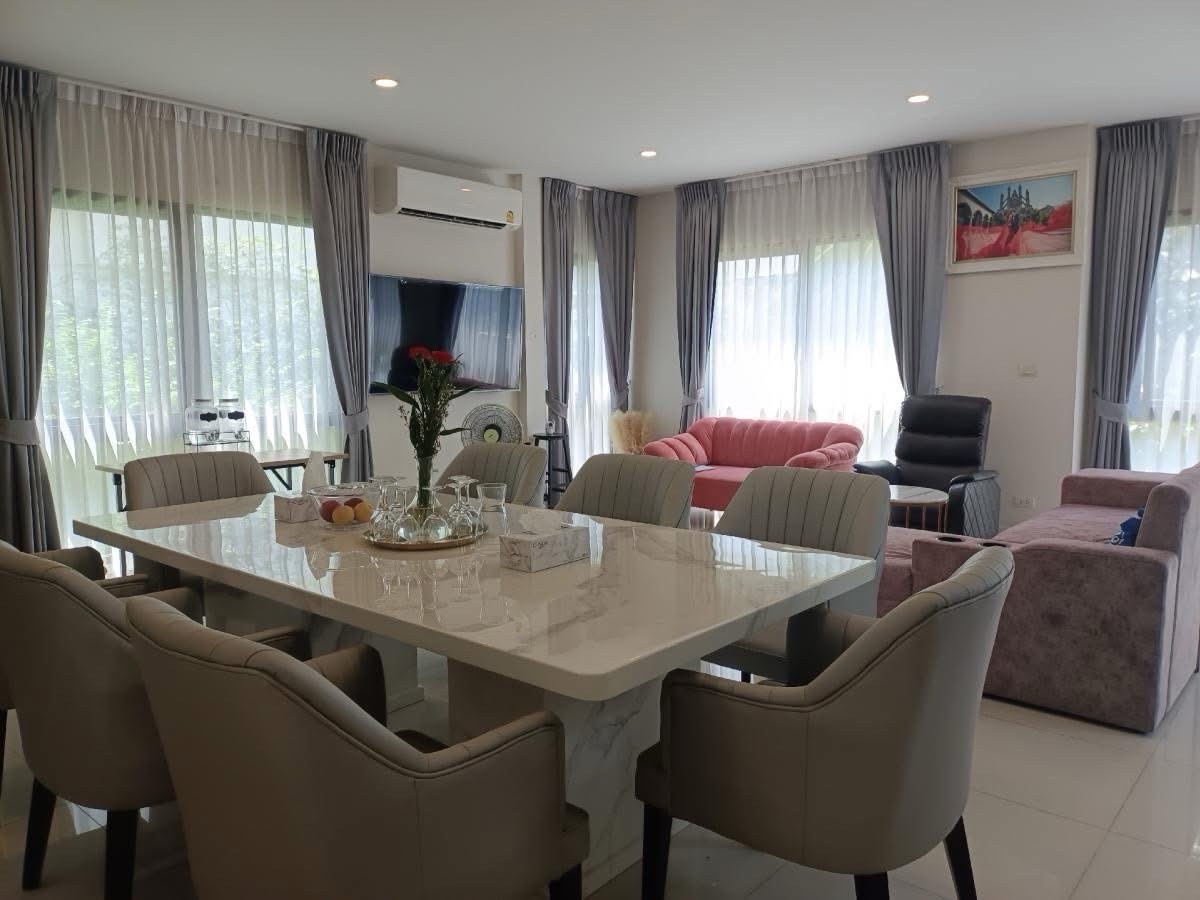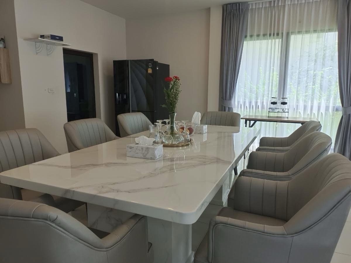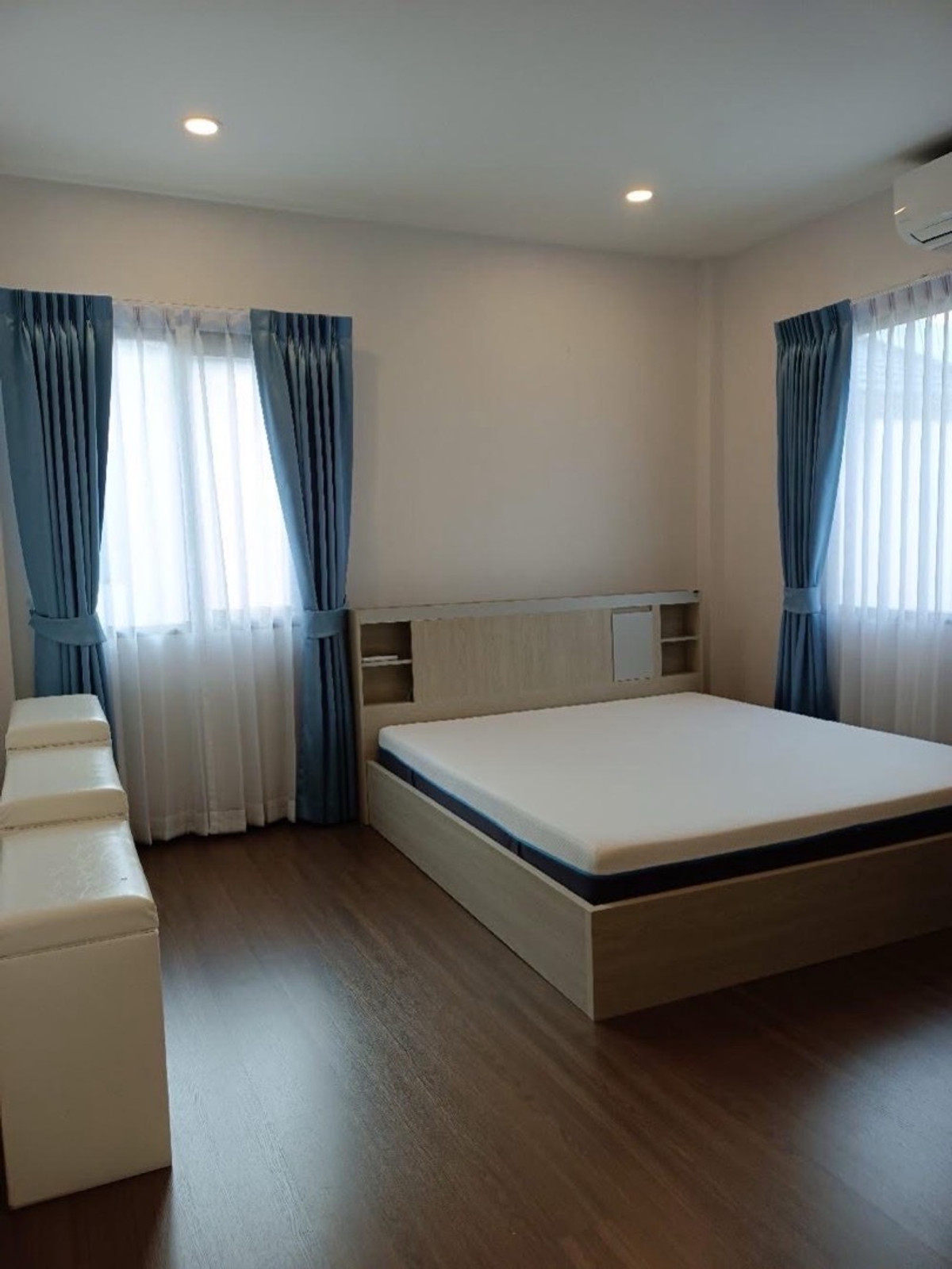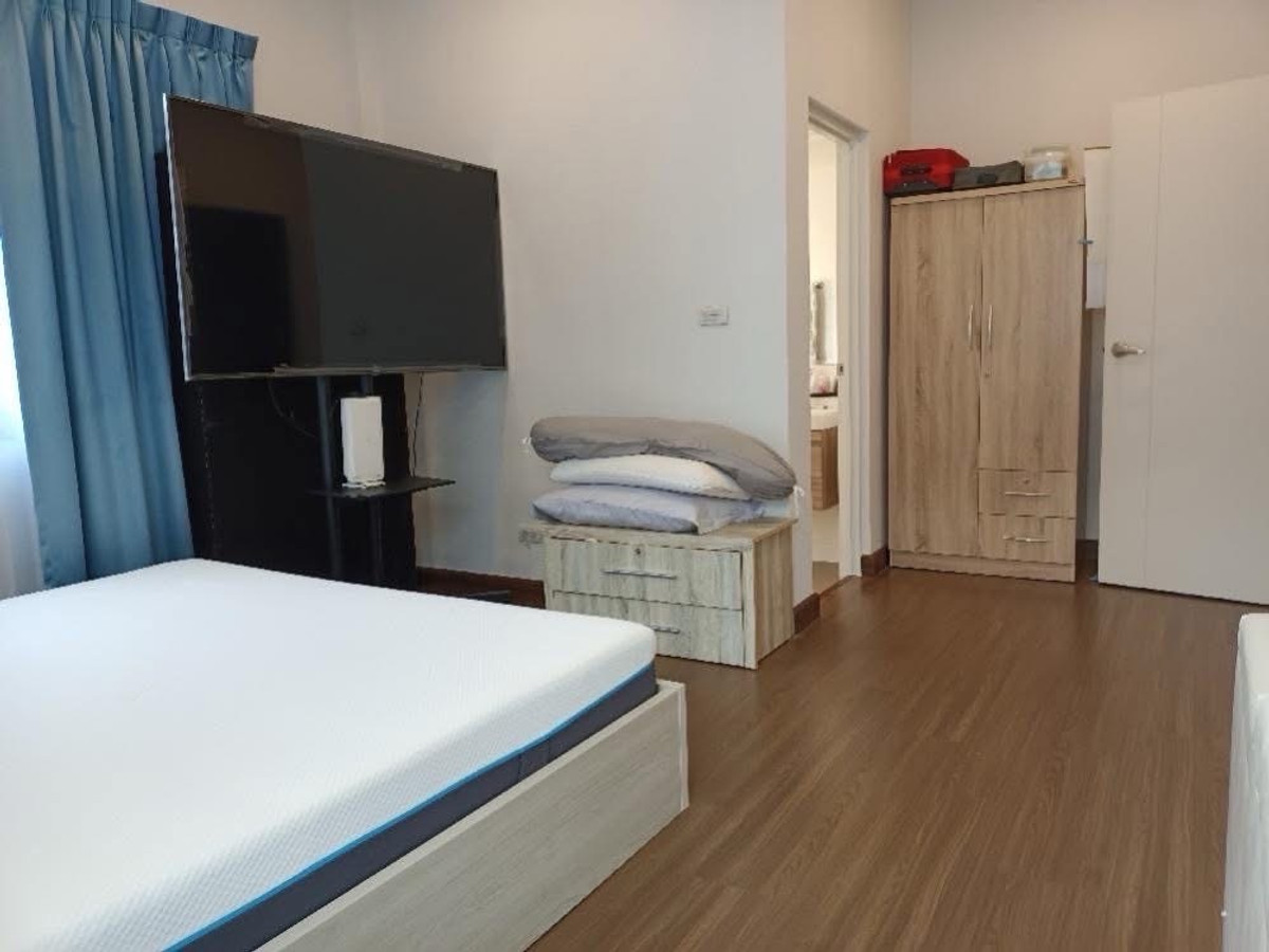 Large detached house for rent in Ratchaphruek area, new house ➖ The City Ratchaphruek-Suan Phak➖ 🏠House details Spacious house style 1st floor: Double Volume Living Area House size 82.4 sq m, usable area 309 sq m - 4 bedrooms, 5 bathrooms (with room for elderly people) - The bedrooms above have their own bathrooms in every room – There is a water heater / water heater in every room - Master Bedroom has a bathtub - There is a maids room with air conditioning and an ensuite bathroom - A ready-to-move-in kitchen. There is a kitchen counter - a proportional living room 🏠Direction: North 🚘 🚘 🚘 Parking for 3 cars 💎Rental price 65,000 baht per month💎 Deposit 2 months, 1 month in advance Price is slightly negotiable. Ready to move in ✨Double Volume 1st floor hall, airy and comfortable. The house has space around the house. Let me tell you, dont miss this house, the best price, close to the expressway 🌟The house is still new, convenient to travel, near the Si Rat Expressway. Quality project 👍Furniture and equipment Various electrical appliances 👍 - Solid color curtains and sheer curtains, 100% sun protection, whole house curtains - Pleated mosquito netting - Range hood - Water pump, water tank - Anti-theft system - Remote control gate - Sofa - Wardrobe, bed, mattress complete in every room - TV - Air conditioning in every room - Washing machine - Large refrigerator - Gas stove / gas tank ✔️Nearby places 🔹Near the Red Line MRT station. Bang Bamru Station 🔹near the Blue Line MRT station. Sirindhorn Station 🔹Near Central Pinklao / The walk Ratchaphruek / The Crystal Ratchaphruek / Central Westville North Bangkok Electricity Authority Bang Kruai Hospital