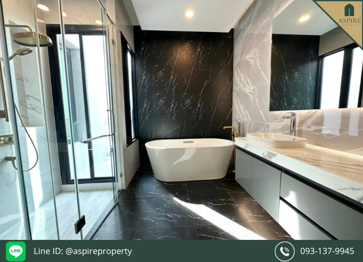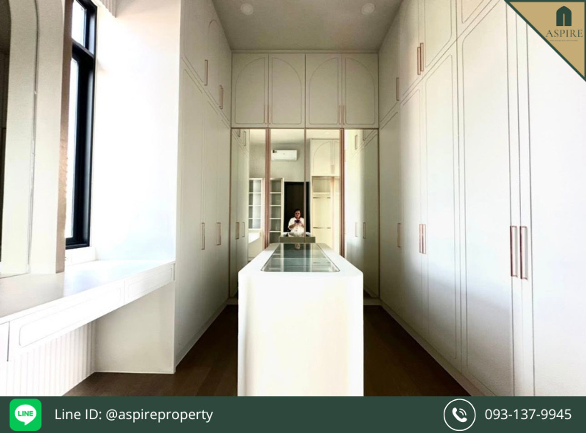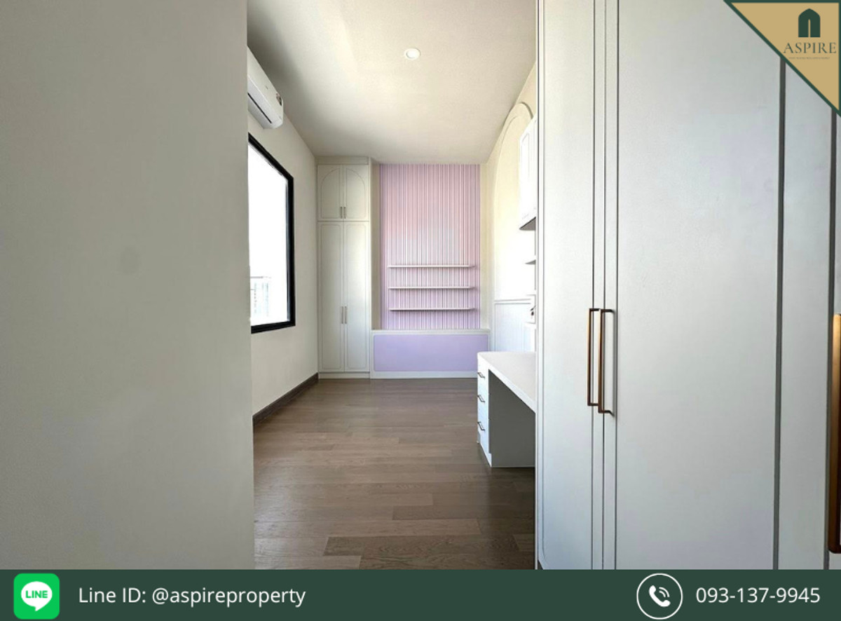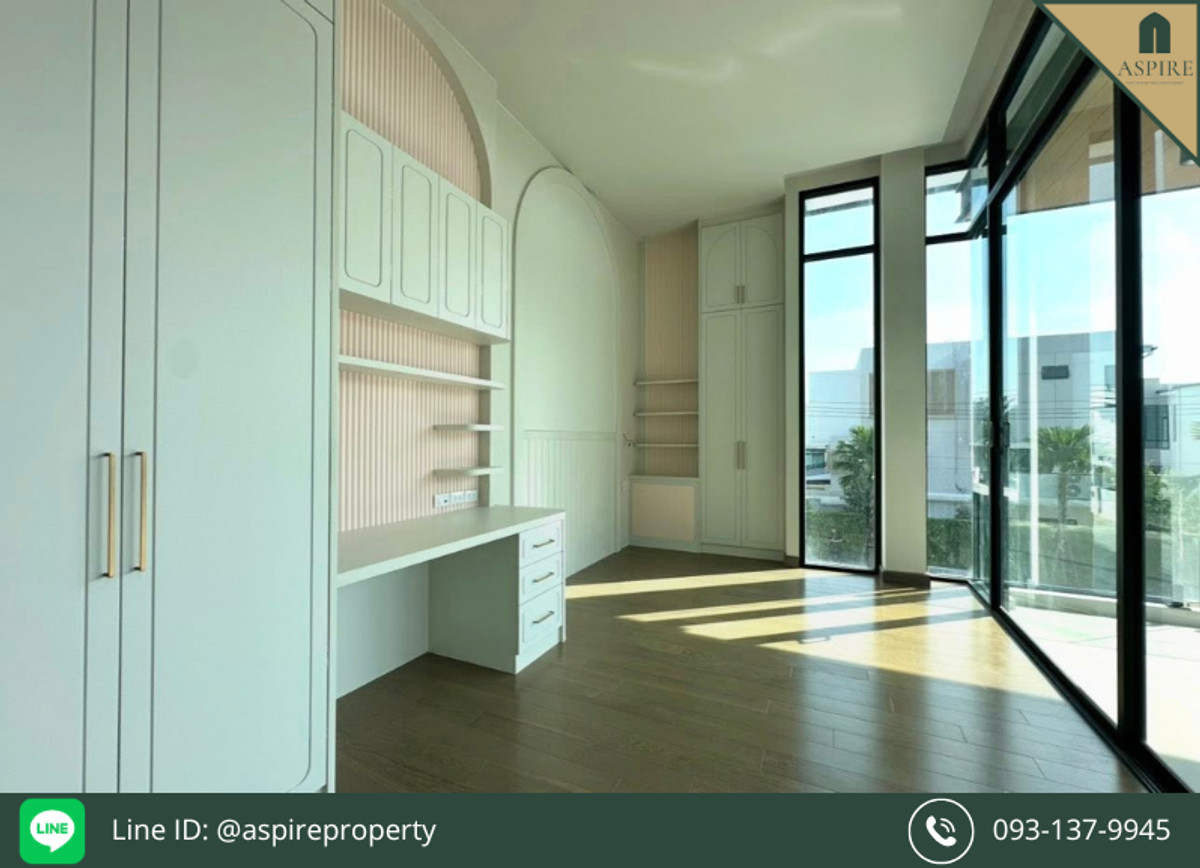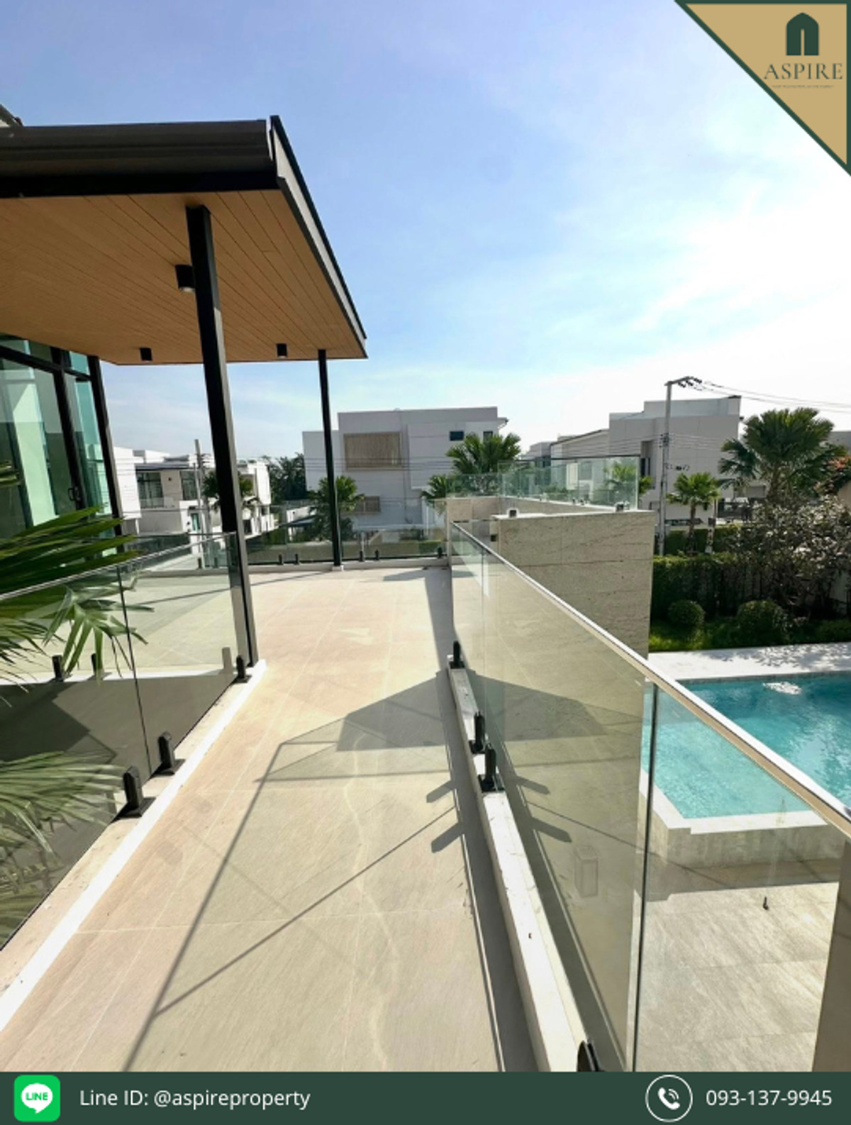 [For Sale] 2-Storey Detached House, The Master Ekkamai-Ramintra with Swimming Pool Property Code: TP25025052 Corner House • Land size 182 sq.w., Usable area 700 sq.m. • 5 BR, 6 BA • 1 Office Room • 1 Multipurpose Room (fitness/home theater/children's room) • Western Kitchen + Thai Kitchen • Fully Furnished • 2 Maid's Rooms • Parking for 6 cars • Saltwater Swimming Pool • Near Pink Line MRT, Ramintra Km.4 Station • Central Eastville, Central Ramintra Selling Price 65 MB For viewing, contact Tel. : Contact number WhatsApp : Contact number Line ID : @aspireproperty Email : Contact email Aspirethailand.com