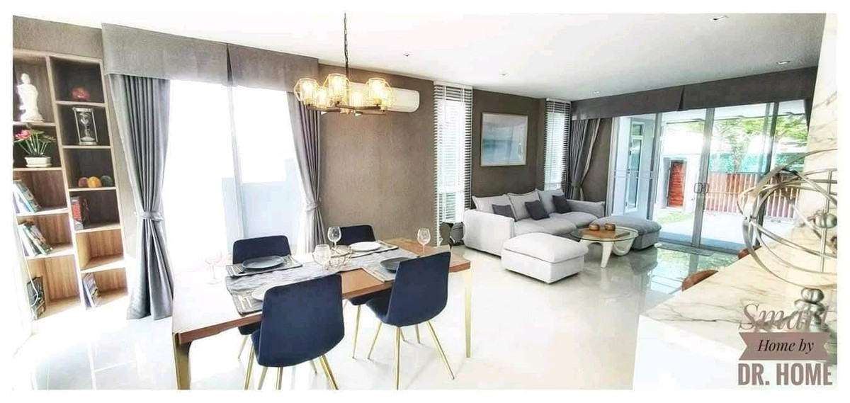 🔥Project AQ Arbor SUANLUANG RAMA 9 - PATTANAKARN Suan Luang Rama 9-Phatthanakan 🔥In front of the garden, best location in the project, 4 bedrooms, 1 maids room 🔥Near Suan Luang Rama 9, Suvarnabhumi Airport, SECON, MEGA BANGNA 🔥3-storey detached house, 4 bedrooms, 4 bathrooms, 2 parking spaces 🔥Rental price 75,000 baht per month, usable area 280-300 sq m -BUILT-IN decoration -There is a maids room and a separate bathroom -There is a garden in the house and can park a lot of cars next to the house - There is a lot of privacy because it is next to the garden and there are no houses opposite. Overlooking a private garden - There is FURNITURE in every room - Refrigerator, TV - 7 air conditioners (every room has 2 living rooms, 2 machines) - Curtains with good sheer curtains throughout the whole house - Adding a garage roof - There are 2 kitchens, a Western kitchen and a Thai kitchen - Adding a roof to the back of the house with a tiled floor, kitchen, electric stove, washing machine and sink - Water pump - Water tank 🔥(2 months warranty + 1 month in advance + 1 year contract) - Near Bangna-Trad Expressway - Near the Industrial Ring Road - Near Kanchanaphisek Road Facilities - Clubhouse - Salt system swimming pool - Fitness - Relaxation Lobby - Large public park - Access Card Control - 24 hour security system Nearby important places Department stores: Paradise Park, Big C, Seacon Square, Central Bangna, Mega Bangna, BITEC, Boonthavorn, HomePro Hospitals: Piyamin Hospital, Chularat Hospital, Kluaynamthai Hospital, Vibharam Phatthanakan Hospital, Synphaet Hospital Bangna Education Institutions: Dusit Thani College, Bangkok Patana International School, Charter International School, Triam Udom Suksa Pattanakarn School Other Udomsuk BTS Station BTS Skytrain Station Punnawithi BTS station Bang Chak BTS station On Nut BTS station Bangna Suvarnabhumi Airport - Mega Bangna - Ikea Bangna - Thai Watsadu - Tesco Lotus - Central Bangna - Big C Bangna - Index Living Mall - Suvarnabhumi Airport