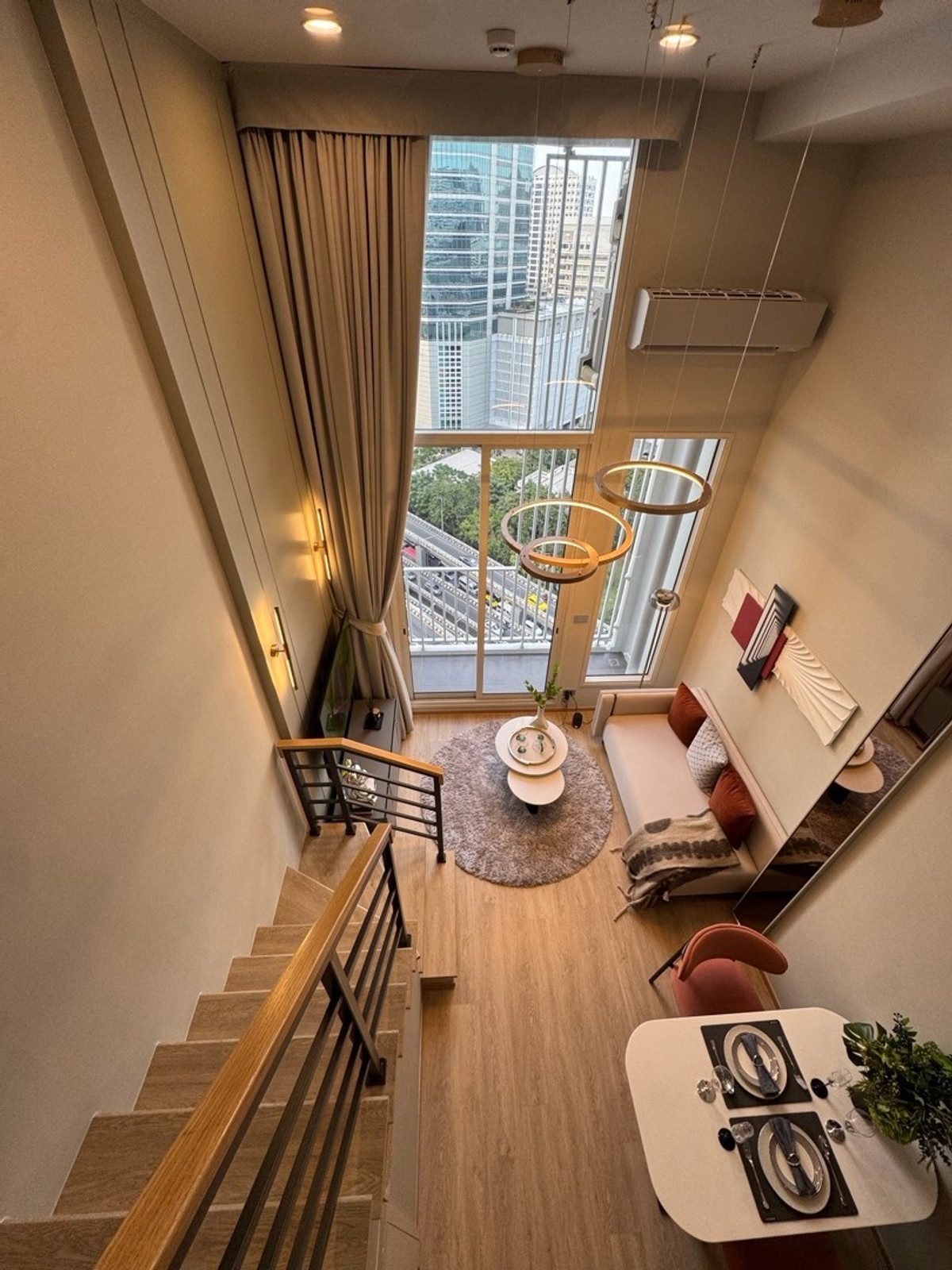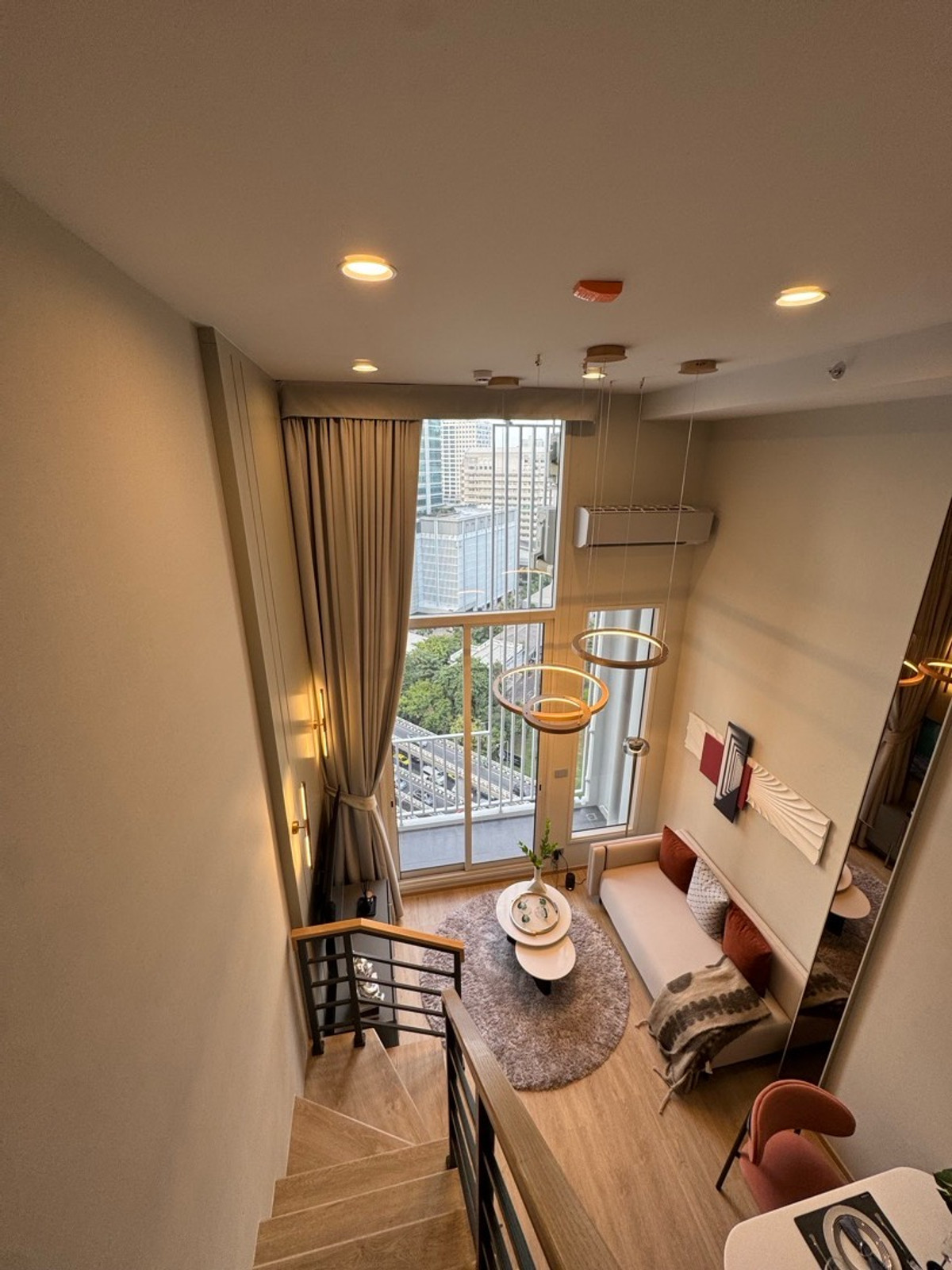 Selling down payment Culture Chula - The owner of the room sells it himself. Guaranteed to be the best price!! ❤️ 2 bedrooms, 2 bathrooms, 2 parking spaces ❤️ *** There are bathrooms both upstairs and downstairs, suitable for actual living** ❤️ Edge room, garden view, walls on both sides not attached to anyone. ✅High floor, southwest view, seeing Mahanakhon building. ✅ Rare room, already sold out, the project has 2 b2b type - lower floor but higher price 🟢Floor 23-13 💵 Price 14,590,000 Area 66 sq m. (44 + upper floor 22) ☎️If interested, contact line: koi_ki -MRT Silom 250 meters -BTS Saladaeng 250 meters -MRT Sam Yan 300 meters Opposite Chula and