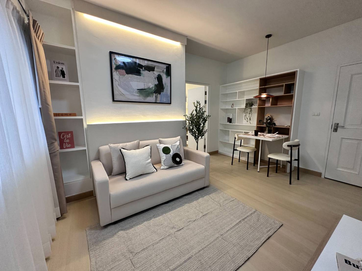 1,690,000 (free transfer) - 1 bedroom, 1 bathroom, separate kitchen - Room size 34.41 sq m. - Building A, 3rd floor - 5 foot bed with mattress - Sofa with storage - Wardrobe - 2 air conditioners - TV shelf - Common fitness area - Security guard 24 hours - Free parking for 1 car