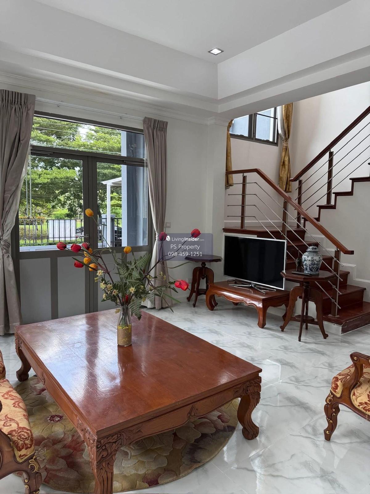 Price: 90,000 baht / month Usable area: 241 sq.m. Area: 99 sq.w. Floor: 2 3 bedrooms / 4 bathrooms / 1 living room / 3 parking spaces Amenities: CCTV, key card Access, fitness center, swimming pool, 24/7 security guard, co-working area, common area. Furniture included: TV, microwave, sofa, refrigerator, bed, air conditioner, water heater, Smoke Dispenser, shelf, TV cabinet, wardrobe, center table. House for rent! convenient transportation, near BTS, near the expressway, fully furnished Ready for viewing. Interested please contact: 📞Call center: Contact number 📱Hotline: Contact number 📲Whatsapp: Contact number 🖱️Line: @psproperty https://lin.ee/d8bpOBs Website: https://www.ps-property.co.th/
