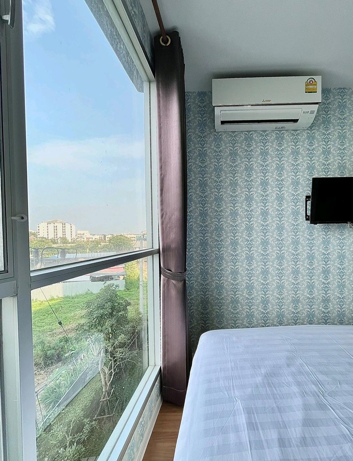 Condo Lumpini Place Bangna Km.3 Room size 26 sq m 1 bedroom, 1 bathroom, Building C, 4th floor Next to Central Bangna , furniture and electrical appliances in the room , bed + mattress, 2 air conditio