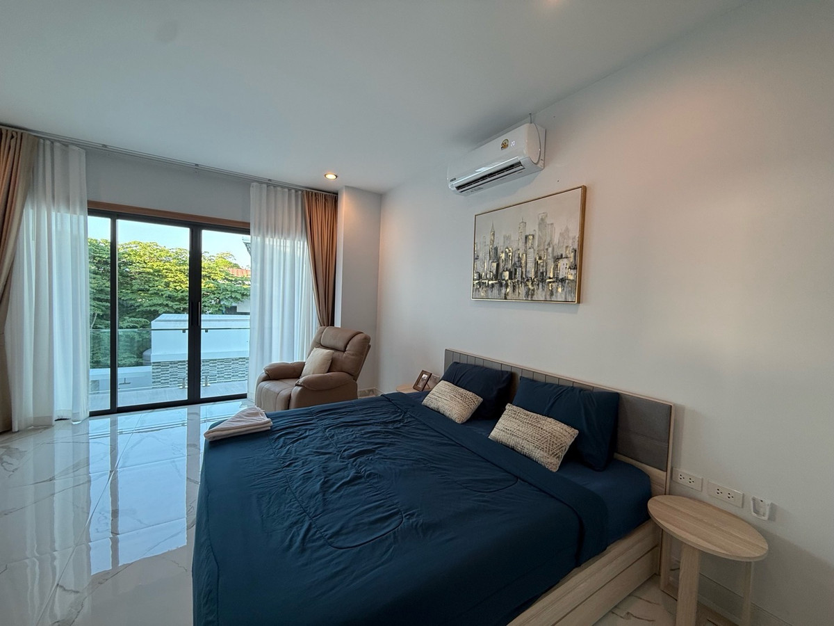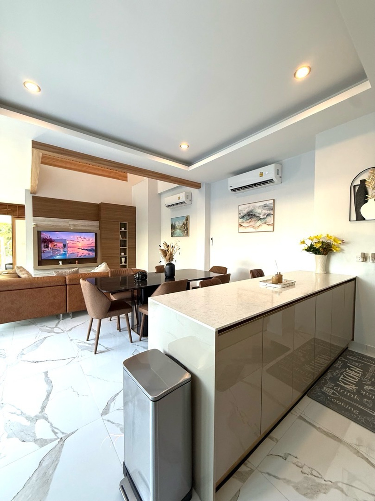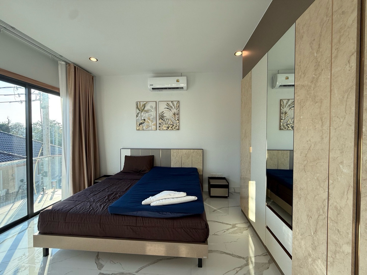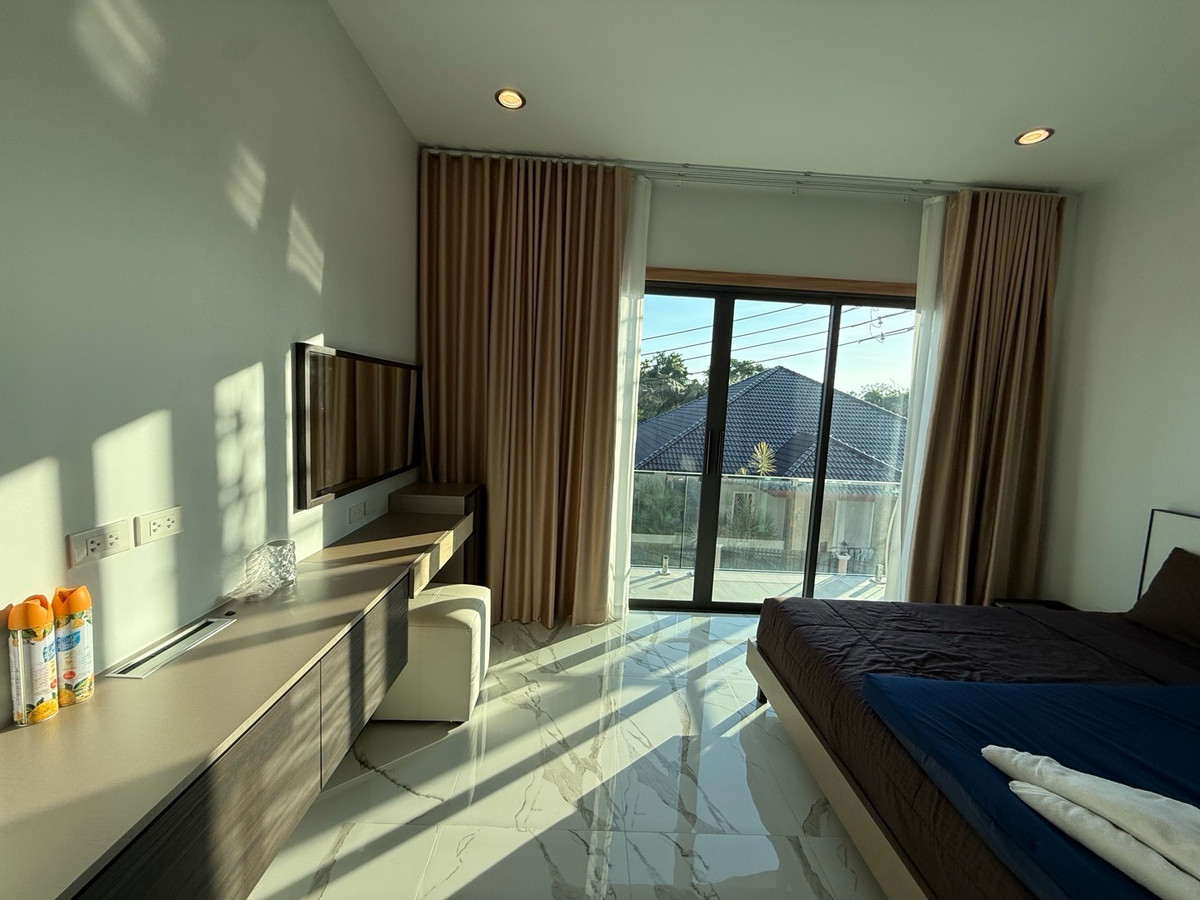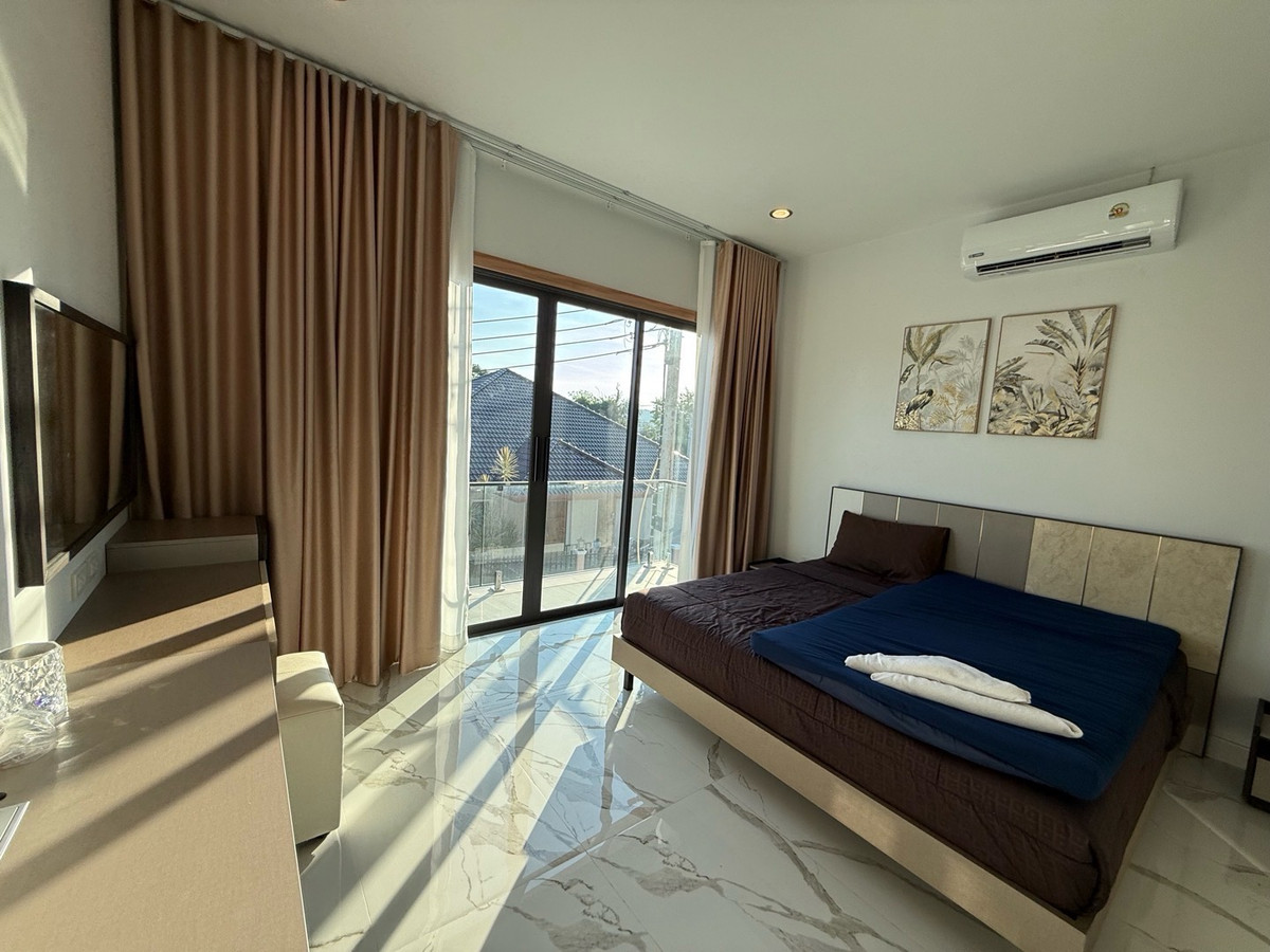 This brand-new, fully furnished pool villa at Rawai Beach, Phuket, offers luxury and convenience with a beautiful two-storey layout and a private pool. Pricing: • For Sale: 22,900,000 Baht • For Rent: ❌160,000 Baht/month (annual contract) ✅Discount to 150,000 Baht/ month for ananual contract Property Details: • Land Area: 324 Sq.m. • Bedrooms: 4 (two master bedrooms) • Bathrooms: 4 full bathrooms + 1 additional toilet + poolside shower Layout: • First Floor: • 1 Master Bedroom with en-suite bathroom and direct pool access • Spacious living room ideal for family gatherings • Second Floor: • 3 Bedrooms and 3 Bathrooms, including a second master bedroom with a bathtub • Cozy living area or workspace Pool Area: • Private swimming pool with a fountain, accessible from the first master bedroom Additional Features: • Gates: Small gate for guests, large gate for car/motorcycle parking • Parking: Space for 2 cars • Appliances Included: TV, washing machine, dishwasher, induction stove (4 burners), hood, hot water, automatic gate, and 7 air conditioners • Scenic View: Beautiful coconut tree views, perfect for sunset time Amenities Included in Rent: • Free water • WiFi • Pool cleaning twice a week • House cleaning once a month Ownership & Transfer: • Ownership: Freehold (Thai owner) • Transfer Fee: Split 50/50 This villa is a perfect mix of luxury and practical amenities, located in a scenic area close to Rawai Beach, ideal for families or anyone seeking a peaceful, tropical lifestyle.