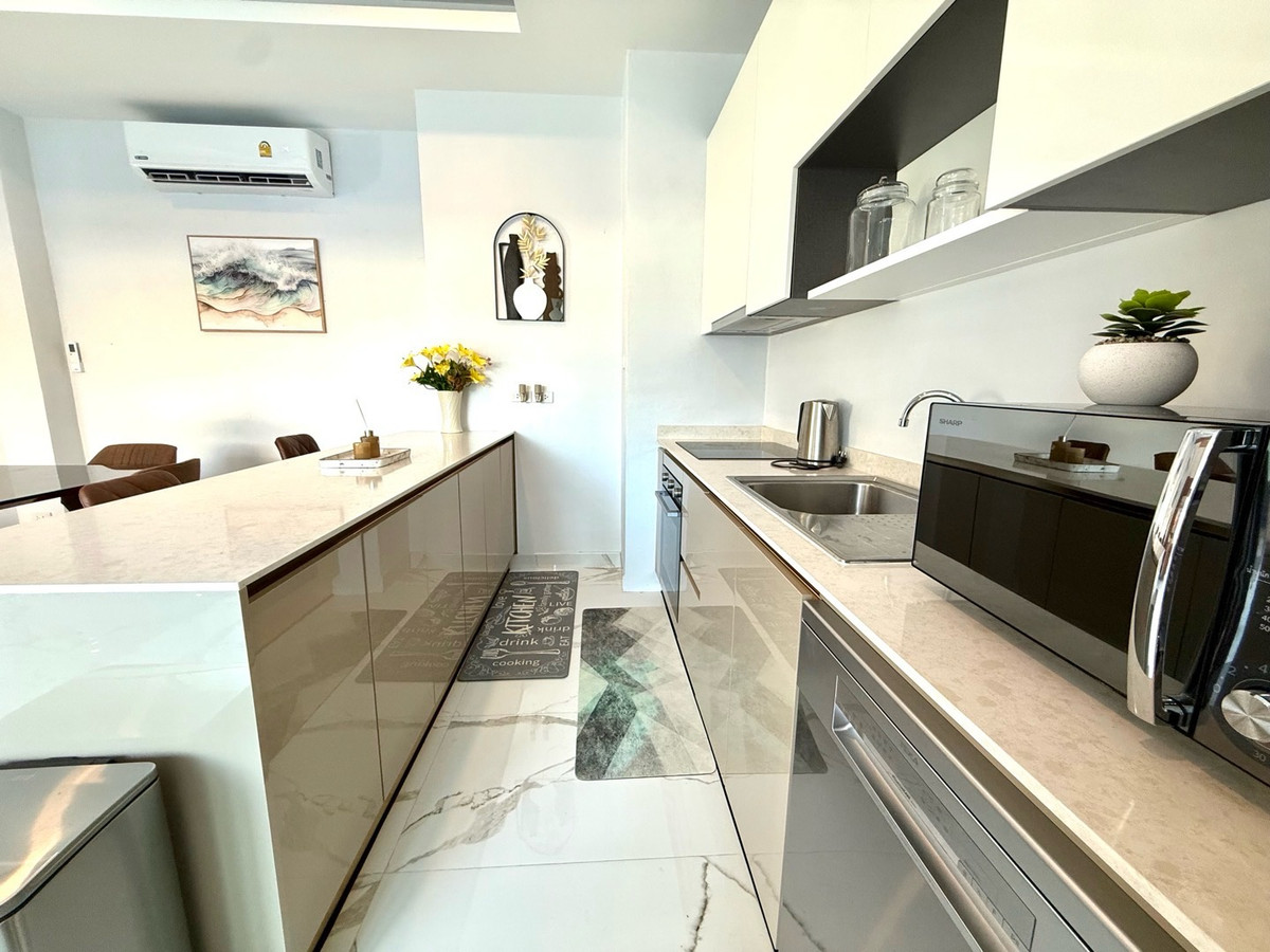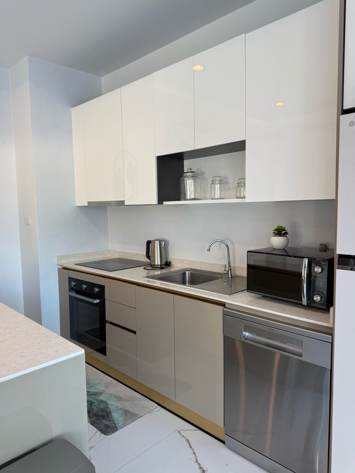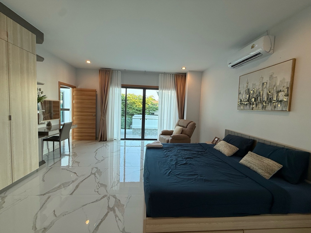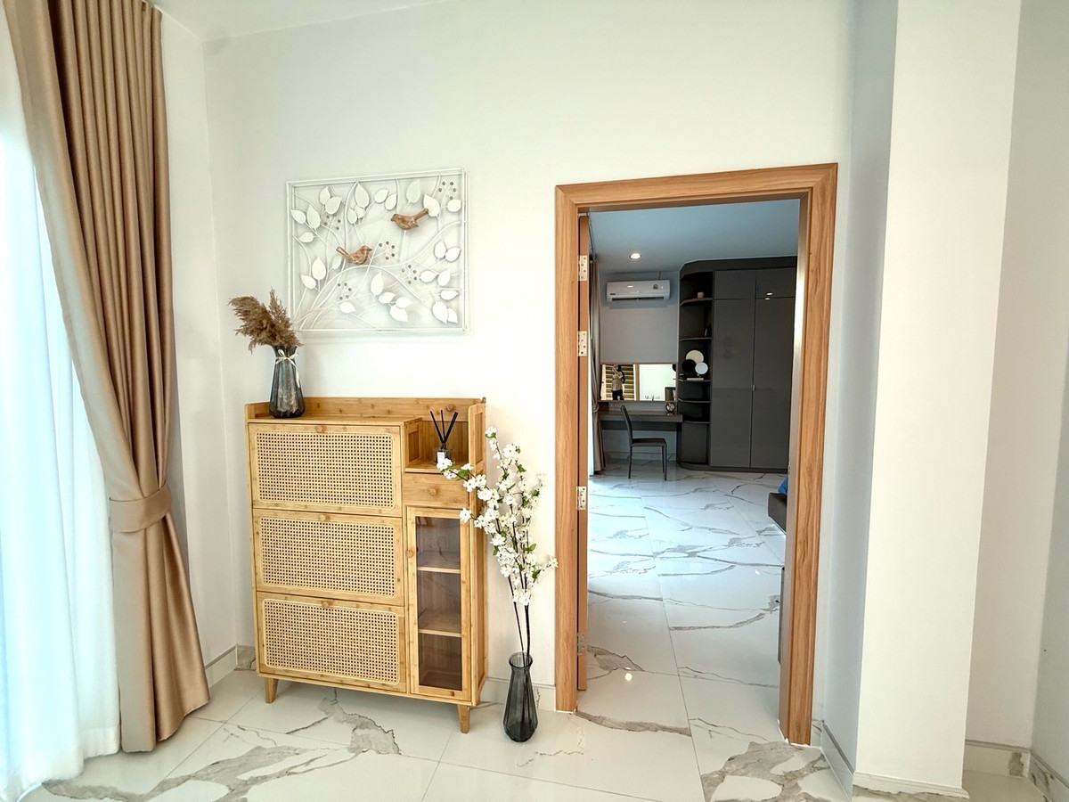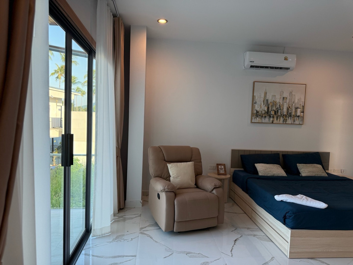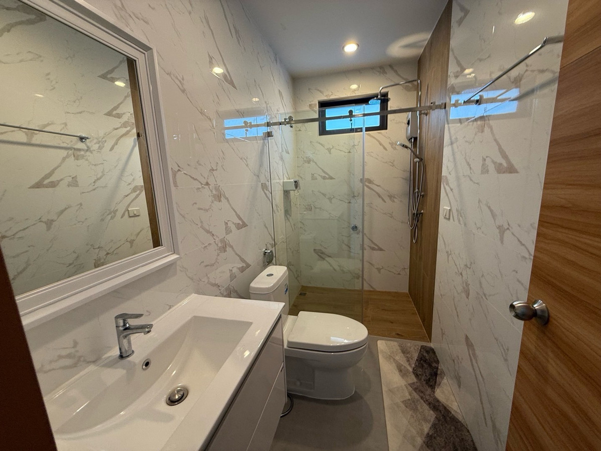 This brand-new, fully furnished pool villa at Rawai Beach, Phuket, offers luxury and convenience with a beautiful two-storey layout and a private pool. Pricing: • For Sale: 22,900,000 Baht • For Rent: ❌160,000 Baht/month (annual contract) ✅Discount to 150,000 Baht/ month for ananual contract Property Details: • Land Area: 324 Sq.m. • Bedrooms: 4 (two master bedrooms) • Bathrooms: 4 full bathrooms + 1 additional toilet + poolside shower Layout: • First Floor: • 1 Master Bedroom with en-suite bathroom and direct pool access • Spacious living room ideal for family gatherings • Second Floor: • 3 Bedrooms and 3 Bathrooms, including a second master bedroom with a bathtub • Cozy living area or workspace Pool Area: • Private swimming pool with a fountain, accessible from the first master bedroom Additional Features: • Gates: Small gate for guests, large gate for car/motorcycle parking • Parking: Space for 2 cars • Appliances Included: TV, washing machine, dishwasher, induction stove (4 burners), hood, hot water, automatic gate, and 7 air conditioners • Scenic View: Beautiful coconut tree views, perfect for sunset time Amenities Included in Rent: • Free water • WiFi • Pool cleaning twice a week • House cleaning once a month Ownership & Transfer: • Ownership: Freehold (Thai owner) • Transfer Fee: Split 50/50 This villa is a perfect mix of luxury and practical amenities, located in a scenic area close to Rawai Beach, ideal for families or anyone seeking a peaceful, tropical lifestyle.