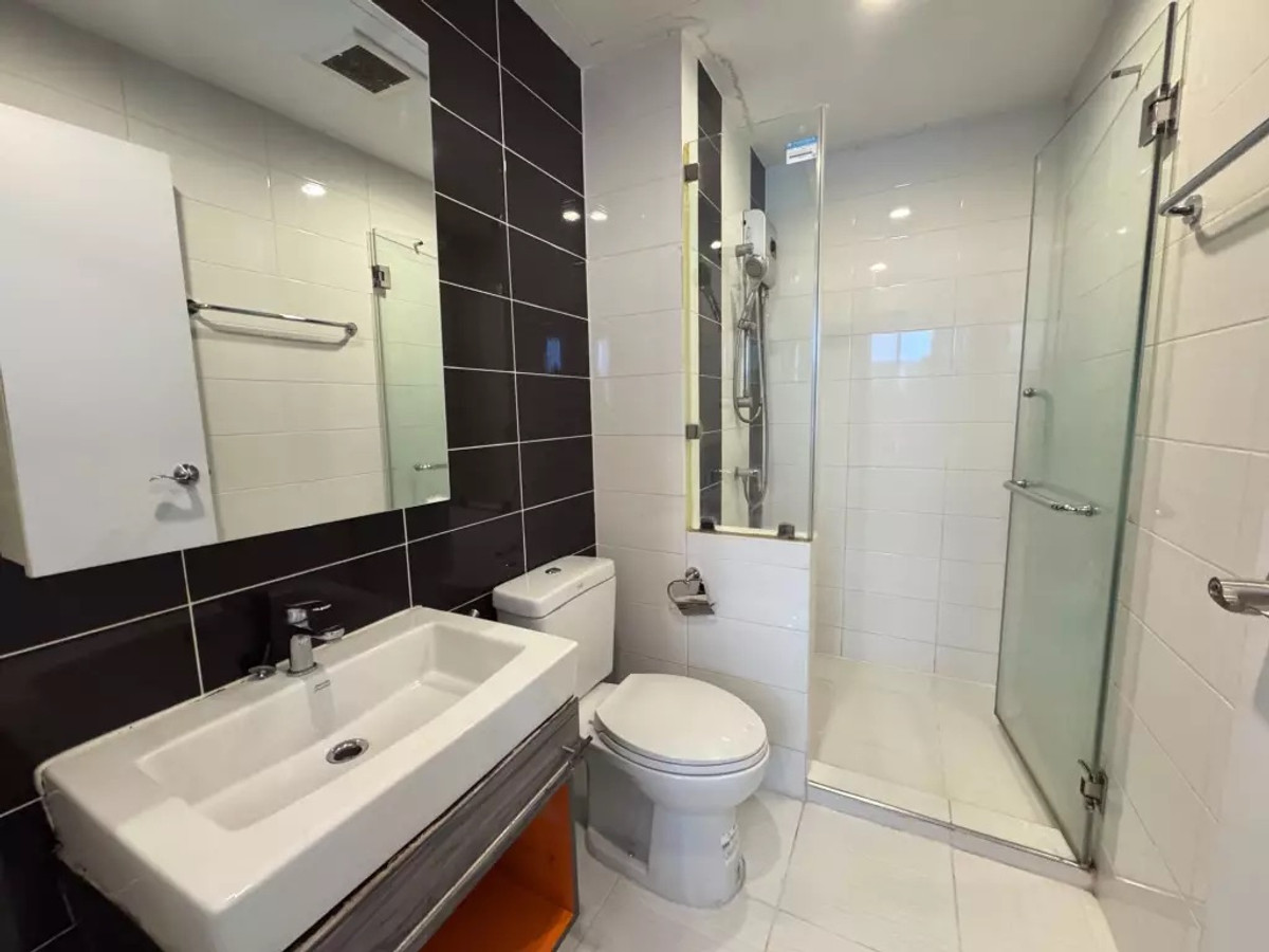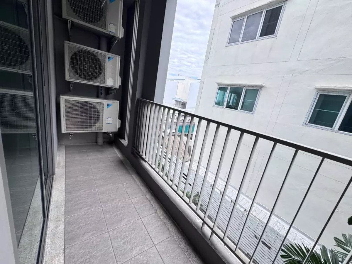 Professional overview This 48.6 square meter freehold condo at Voque Place Sukhumvit 107 offers a practical two bedroom, one bathroom . The home presents a bright atmosphere with modern interiors and a fully furnished setup that is ready to move in. Key features and highlights The living area feels open and welcoming with wood laminate flooring and neutral wall coverings. A built-in TV cabinet, flat-screen TV, air conditioning unit, and a coffee table with storage create a comfortable daily living space. Large interior doors connect the living room to the bedrooms and enhance natural light flow. The dining zone features a four-seat dining table with orange chairs, patterned wallpaper, and built-in ceiling lighting. A glass-front storage cabinet and wooden storage unit support efficient organization in a compact layout with convenient bathroom access. The condo offers multiple bedrooms with varied configurations. One bedroom includes a double bed, full-height built-in wardrobe with sliding doors, and a built-in dressing table with wall mirror. Another bedroom presents a single bed, wardrobe with sliding doors, and a small desk or dressing table with an orange chair. Large windows, floor-length curtains, and textured accent walls give the sleeping areas a bright and modern character. The bathroom has a modern design with a glass-enclosed shower, wall-mounted and handheld showerheads, and a built-in shower niche. A wall-mounted sink with under-sink storage, contemporary faucet, large mirror, two-tone wall tiles, and light ceramic floor tiles complete the clean and functional space. The kitchen uses a compact layout with modern cabinetry in a wood pattern finish and bright orange accent shelving. A black countertop with a single-bowl stainless steel sink, electric cooktop with two burners, and overhead range hood support everyday cooking. A glossy gray subway-style tiled backsplash and upper and lower cabinets provide both style and storage. A full-size refrigerator and freestanding storage add practicality. Location and surroundings The condo is located in Samrong Nuea, Muang Samut Prakan, within the Voque Place Sukhumvit 107 project. The modern mid-rise building has eight floors and 168 units, with a contemporary facade, multiple balconies, and landscaped front garden areas. Large windows on the exterior enhance natural light for residents. Nearby area and lifestyle The setting in Samut Prakan offers an urban lifestyle with residential comfort. The building entrance displays a branded sign and a well-lit approach with an outdoor seating corner. Large glass doors on the ground floor connect to common zones and create a welcoming arrival experience for residents and visitors. Benefits and amenities Residents gain access to an outdoor swimming pool with an infinity-style edge and a spacious pool deck. Poolside seating and landscaped surroundings with trees support relaxation. The outdoor areas feature a contemporary design and a pleasant evening ambiance. An indoor fitness room provides multiple treadmills, exercise bikes, and an elliptical machine for regular workouts. Large windows bring in natural light and views of greenery, and a wall-mounted TV and air conditioning add comfort. The combination of pool, gym, and modern common areas increases the everyday appeal of this freehold condo. This fully furnished 3rd floor unit at Voque Place Sukhumvit 107 offers a balanced mix of efficient layout, contemporary interiors, and practical shared facilities in Samrong Nuea, making it a strong option for personal living or long term holding. ส่วนลดและโปรโมชั่นสุดคุ้ม เพียงลงทะเบียนก่อนเข้าชมโครงการ ทำนัดหมายเข้าชมโครงการได้ทุกวัน :) หรือสอบถามข้อมูลเพิ่มเติม คลิก! https://line.me/ti/p/AnAGnY3kdD For more information Tel: Contact number WhatsApp: Contact number LineID : ployfahfah Link: https://line.me/ti/p/AnAGnY3kdD Co agent welcome*