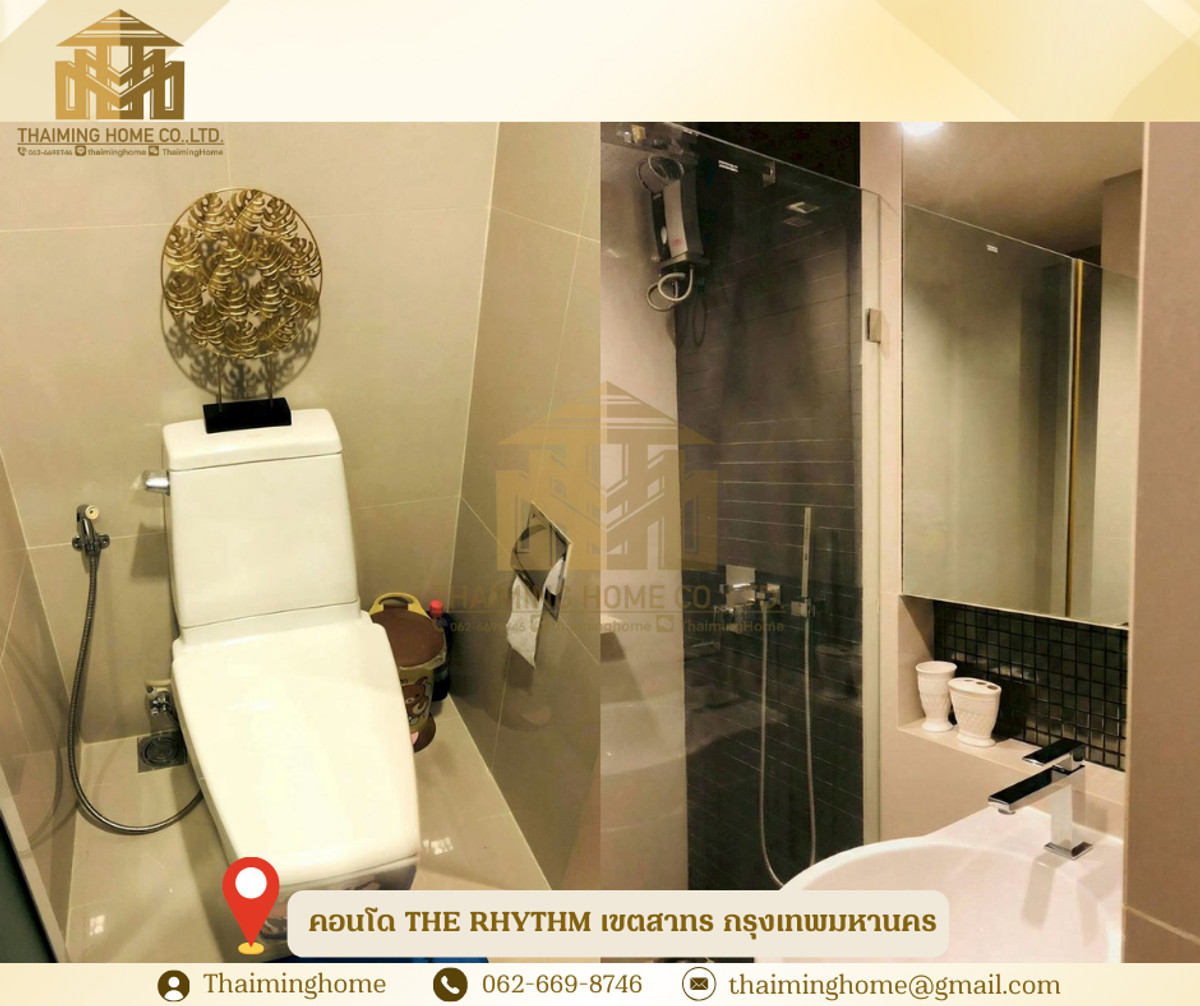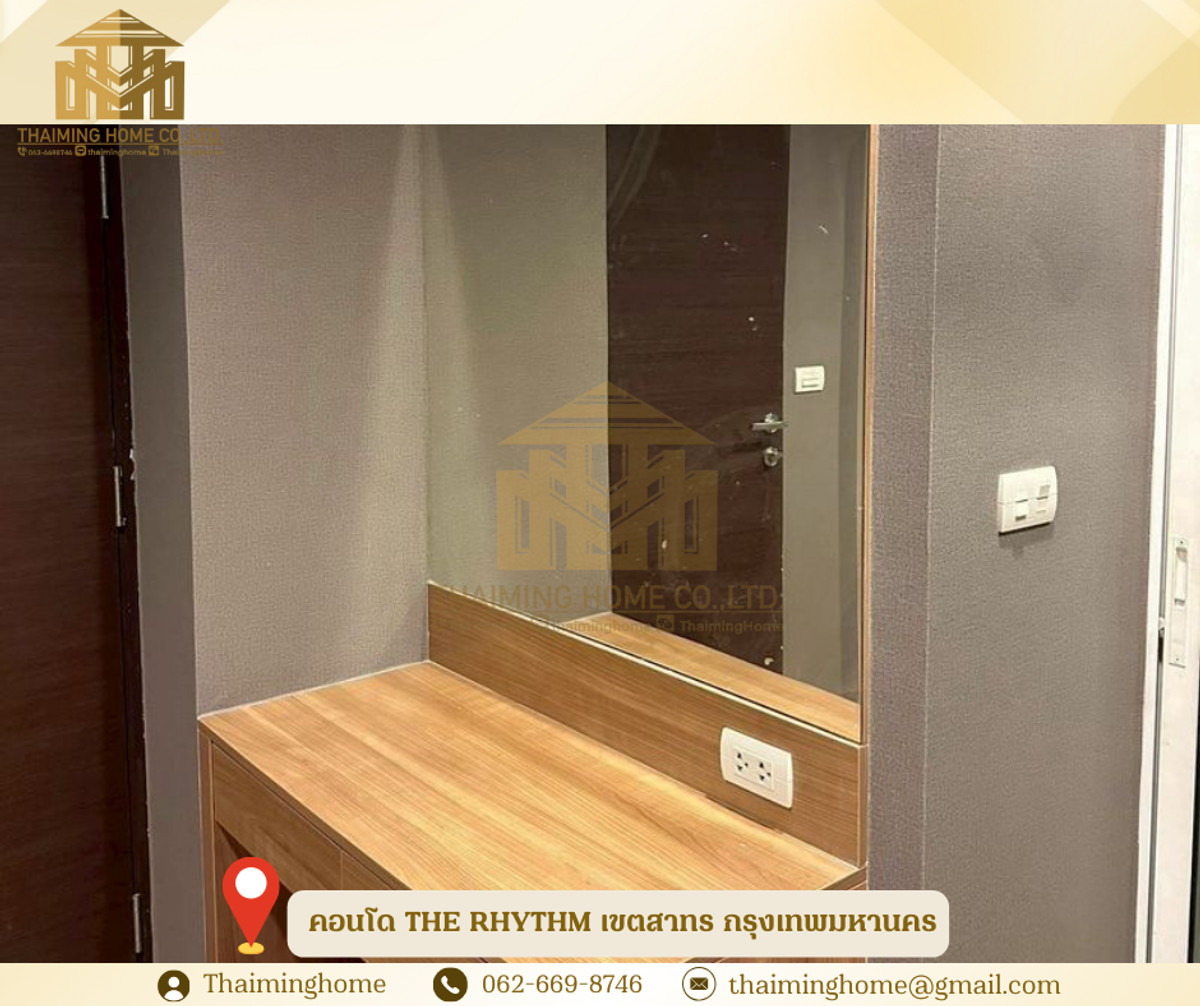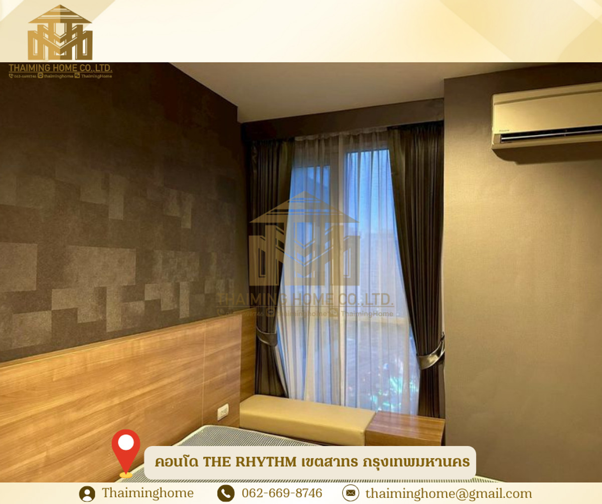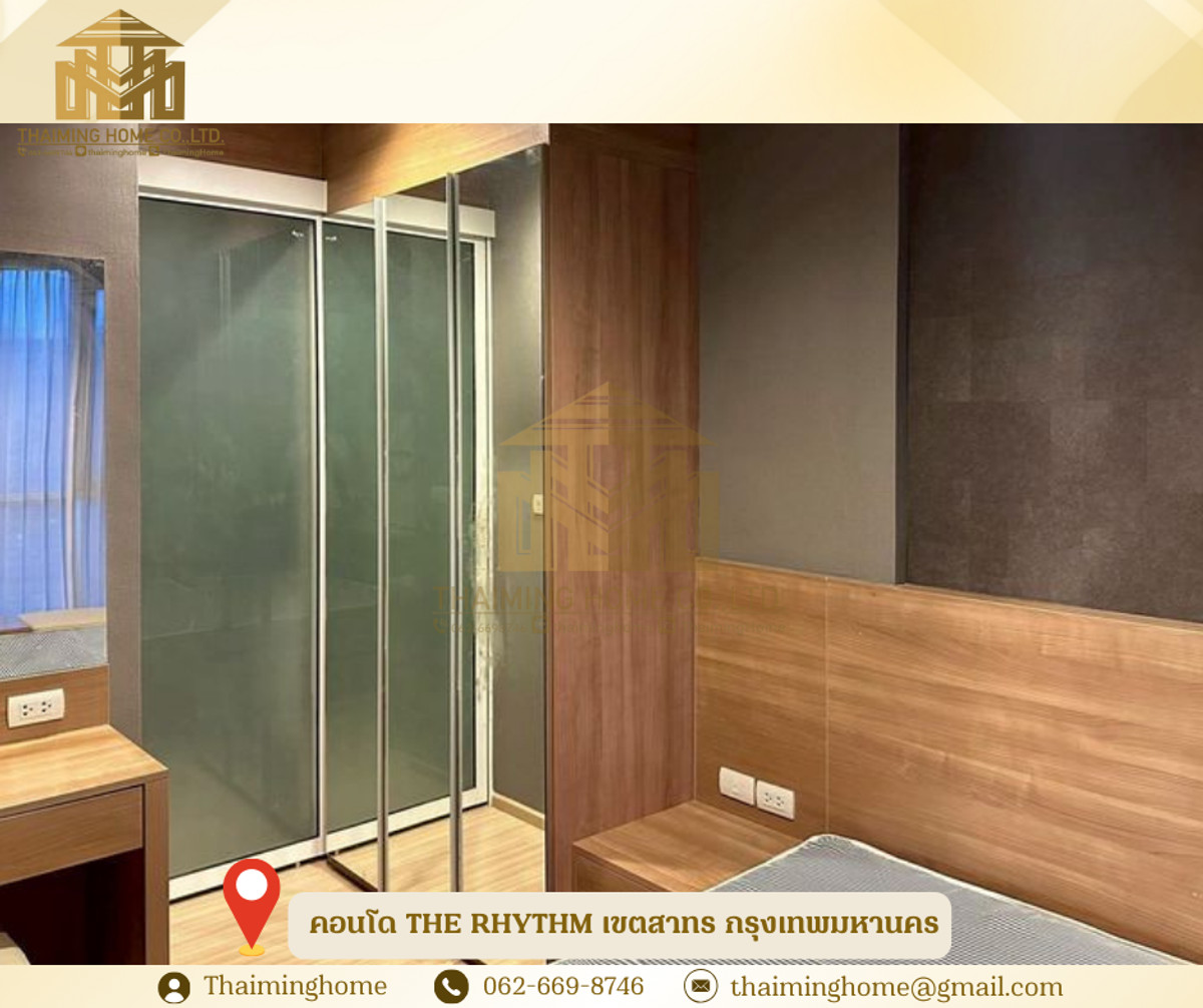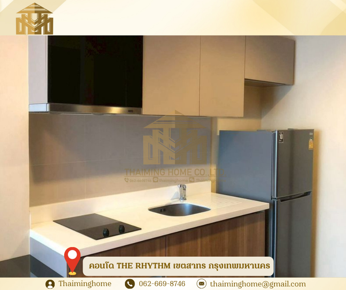 Condo for rent, THE RHYTHM, Sathorn area, Bangkok (Property Code TC4-101225) Details - Size: 35.5 square meters - New unit, high floor, city view, quiet (beautiful at night) - City view towards Sathorn, not adjacent to other units, quiet and private. Located on the 23rd floor, Building S. Newly renovated interior. - 1 bedroom, 1 bathroom, 1 living and dining room. Ready to move in. Sky Living type. - Samsung Digital Door Lock with key card access or code. - Appliances included: Refrigerator, microwave oven, Franke electric stove with hood, Smart Android TV, LG front-load washing machine, Stiebel water heater with large rain shower (strong water pressure). - Bathroom has separate wet and dry areas. Double access bathroom from both living room and bedroom for added privacy. - Balcony offers city views of the Sathorn area. No noise from the BTS Skytrain. No view of abandoned buildings. Nearby Places: - Silom BTS Line - Central Bangrak - SKY BAR - ICONSIAM - Big C Food Place, Asiatique Rental Conditions: - Minimum 1-year contract - 2-month security deposit - 1-month advance rent - Rent: 20,000 THB per month --------------------------------- บริษัท ไทยหมิง โฮม จำกัด Thaiming Home Co.,Ltd. 泰明房园 房产公司 ----------------------- Contact ติดต่อ : Contact number Contact : Contact number คุณหมิง(中文) Line ID: thaiminghome Line ID: @thaiminghome https://lin.ee/PkkHwYv Wechat : ThaimingHome E-mail : Contact email -----------------------