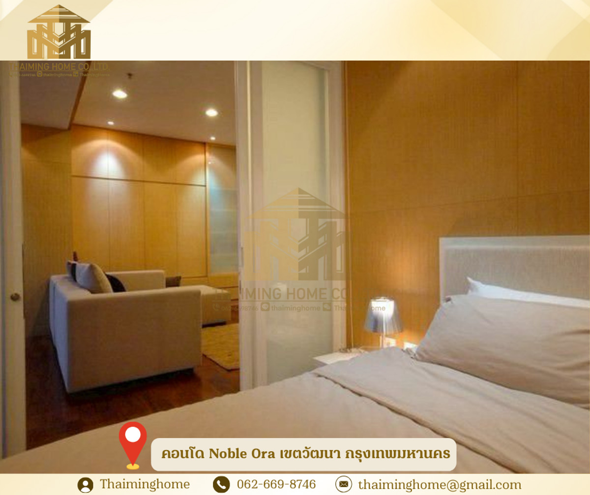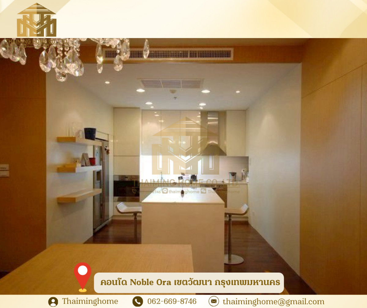 Condo for rent, Noble Ora, Watthana District, Bangkok (Property Code TC4-111225) Details: - Usable area 140 sq m - Building X, Unit 28, 9th floor, 2 bedrooms, 2 bathrooms, pool view, built-in furniture, fully equipped with electrical appliances. - Built-in kitchen with island - Oven, electric stove, range hood - Side-by-side refrigerator - Dining table for 4-6 people - Panasonic 49" Smart TV (recently replaced), rotating TV stand (can be rotated towards the dining table or sofa) - Master bedroom with bathtub, walk-in closet, and shower - Bedroom 2 has a pool view and balcony. Both bedrooms and the living room have real wood flooring. - Water heater system in both bathrooms (boiler type) - Laundry room with washing machine, dryer, and other equipment Nearby Places: - Thonglor Station - Donki Mall Thonglor - Big C Ekkamai - Samitivej Sukhumvit Hospital - Central Rama 9 - Ramkhamhaeng University Rental Conditions: - Minimum 1-year contract - 2-month security deposit - 1-month advance rent - Rent: 65,000 THB per month --------------------------------- บริษัท ไทยหมิง โฮม จำกัด Thaiming Home Co.,Ltd. 泰明房园 房产公司 ----------------------- Contact ติดต่อ : Contact number Contact : Contact number คุณหมิง(中文) Line ID: thaiminghome Line ID: @thaiminghome https://lin.ee/PkkHwYv Wechat : ThaimingHome E-mail : Contact email -----------------------