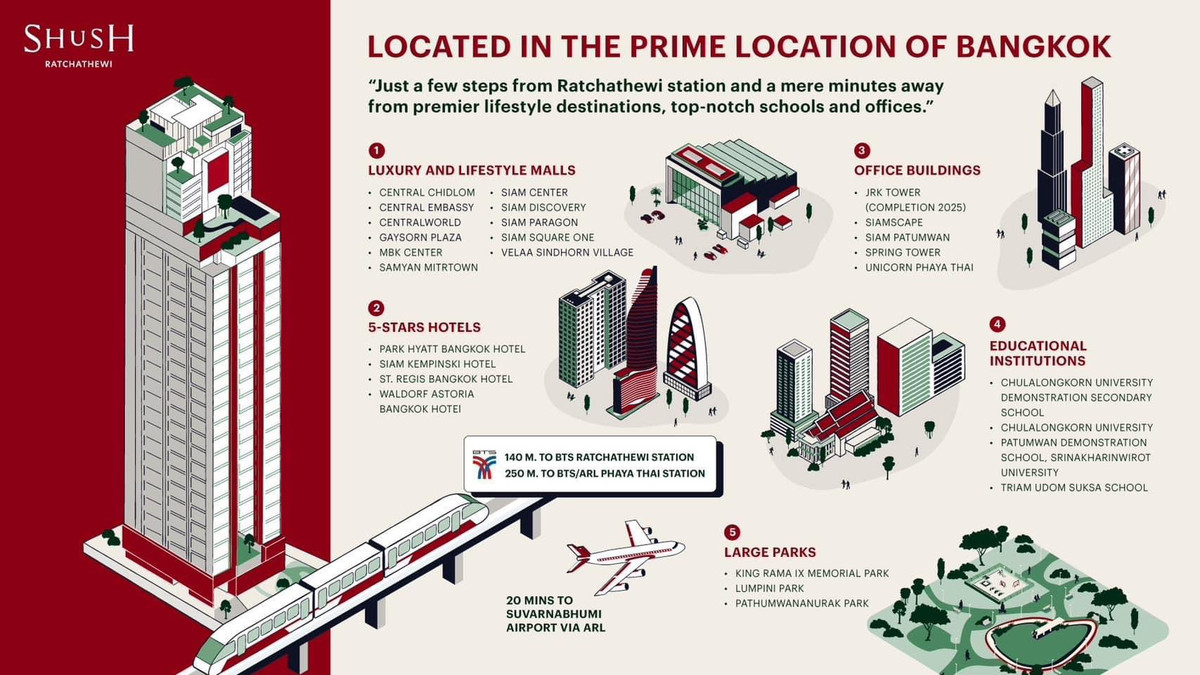 Modern Loft Residence in Ratchathewi – Compact Luxury in the Heart of Bangkok Property Code: ELITENA25073 Features SHUSH Ratchathewi offers contemporary loft-style living with a total usable area of 41.5 sq.m. Thoughtfully designed to maximize space efficiency, the residence comes with built-in furniture, air-conditioning, and a built-in kitchen equipped with hood and microwave. The bathroom features a separated wet zone for everyday comfort. Ideal for urban professionals or investors seeking strong demand in a prime CBD location with excellent access to transit and lifestyle destinations. Location Highlight Ratchathewi – Prime CBD Area BTS Ratchathewi Station Phaya Thai Business Hub Siam Shopping District Victory Monument Contact Khun Na Na Line Official: @alistelite WhatsApp: Contact number Mobile: Contact number