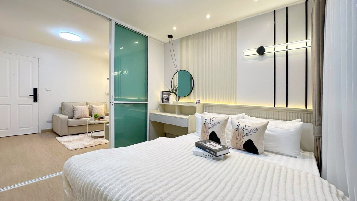 D Condo Ramkhamhaeng 9 (D condo Ramkhamhaeng 9) 1 bedroom, separate kitchen, size 29 sq m. (special corner room) next to foodland, very convenient to travel. Next to Ramkhamhaeng Road, intersecting with Rama 9 Installments 8,xxx /month, get a full loan, no need to use cash . ✅ Electricity bill pays to the Metropolitan Electricity Authority ✅ Common fee 30 baht per sq m. ▪️ Parking for 1 car, 1 more motorbike ▪️ Swimming pool / fitness / Library ▪️ Key Card to enter and exit the building. Floor lock ▪️ Digital Door lock ▪️ Security 24 hrs. ▪️ 7-11 in the project . Location : D Condo Ramkhamhaeng 9 https://goo.gl/maps/SWcWnkYhdUWnWCHQ7