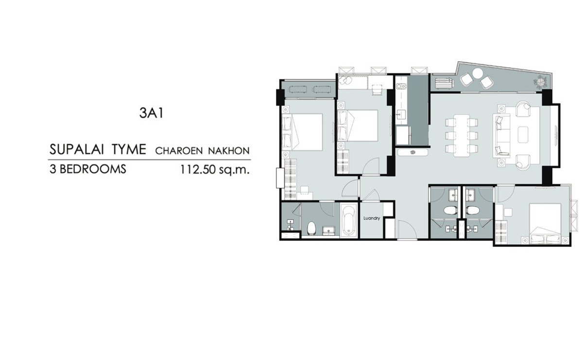 This beautiful unit is located on Floor 21, Position 25, offering a stunning southwest-facing view with breathtaking sunsets over the Chao Phraya River. Unit Details 3 Bedrooms | 3 Bathrooms Usable ar