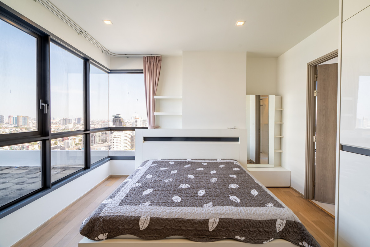 This spacious 2-bedroom condominium at HQ by Sansiri is designed for modern city living where convenience and lifestyle come together. With generous living space and walking-distance access to BTS Phr