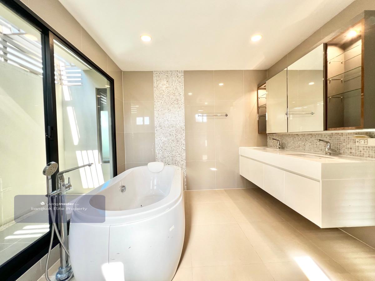 For rent, 3-story detached house, The Plant Elite, Phatthanakan 38 :: Highlights :: - Beautifully decorated house. The owner will buy brand new furniture - has a lot of privacy. The entire project has only 87 houses - the project location is very good. Can enter and exit by many routes, Phatthanakan Road, Srinakarin Road and On Nut Road :: Details :: - House type ELTON-L - 3 floors, high ceilings Modern - Size 51.1 sq m - Area 272 sq m - Type 4 bedrooms, 5 bathrooms - As for the 2nd floor, there will be a high, airy hall to welcome guests well - 1 bedroom, 1 bathroom for the maid - 9 air conditioners installed :: Facilities :: - swimming pool - fitness - garden - security 24 hours Highlights/nearby places - near the Yellow Line BTS Station, Si Nut Station - near On Nut BTS Station - near Airport Link Hua Mak Station - Near Rama 9 Expressway - Near Sukhumvit Expressway 62 - Near Sukhumvit Expressway 50 (Ekkamai-Ramintra) - Near Suvarnabhumi Airport - Near Suan Luang Rama 9 ---------------------------------------- Price: 120,000 baht ---------------------------------------- For more information, please contact Mr. Big Call : Contact number Line : big Contact number Bangkok Elite Property
