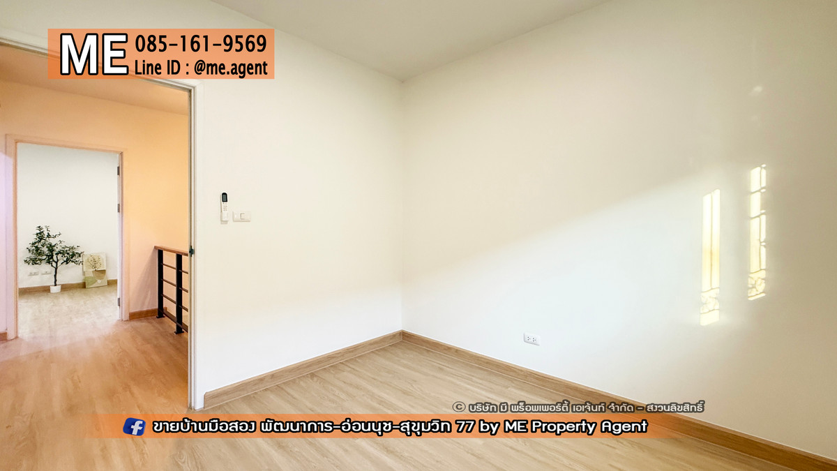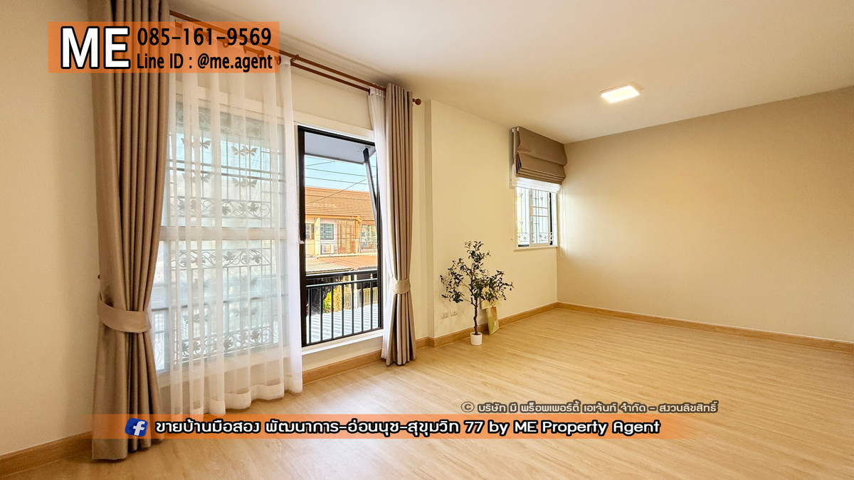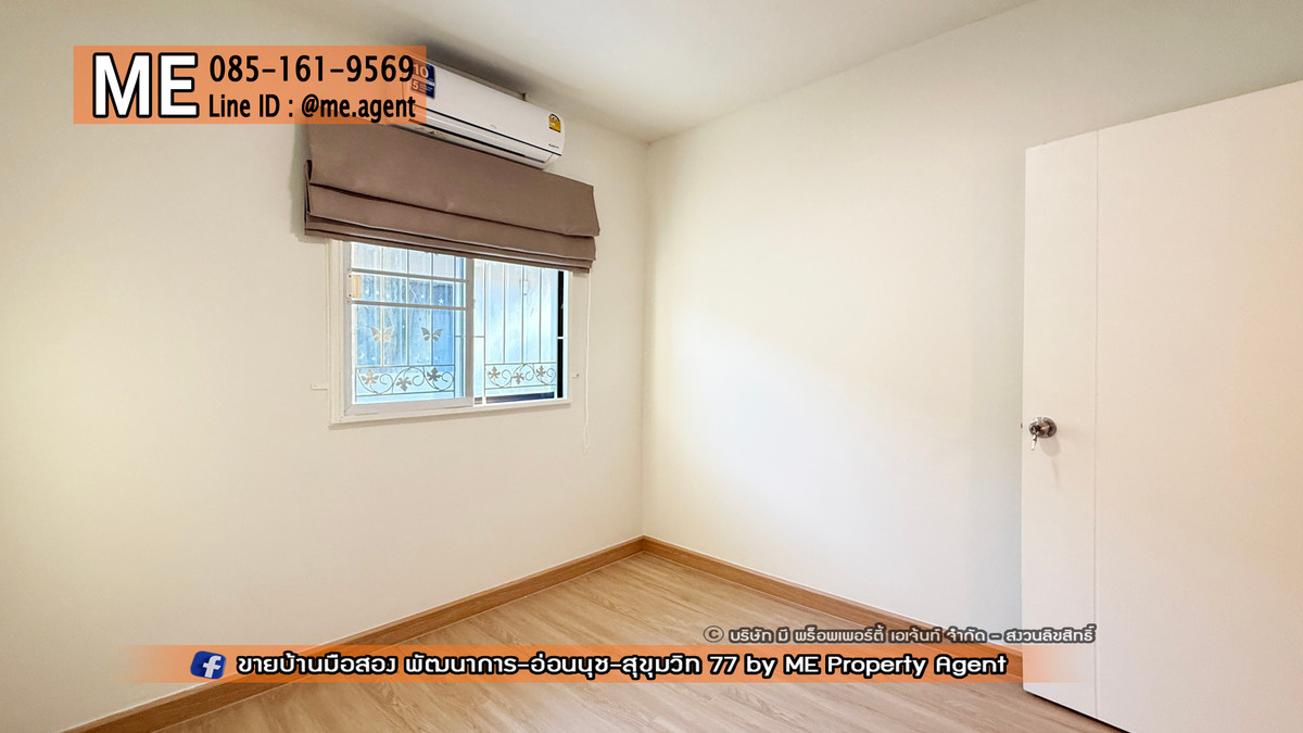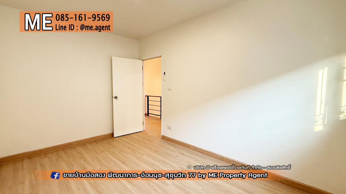 urgent! End of the year promotion, new house, better than before Townhouse for sale, hot location, completely renovated, Pruksa Ville 57, Phatthanakan 32, near Ekkamai, Thonglor, Sukhumvit, call Contact number (TB62-22) .New, big house, ready to move in, good price, free consultation! Good location, convenient travel, near Airport link Hua Mak station, near BTS On Nut station .- Area 22.2 sq m., usable area 130 sq m. - 3 bedrooms, 2 bathrooms - 1 newly extended kitchen - 2 parking spaces - 3 air conditioners - The front of the house faces north, shaded all day >>>Highlights of the house<<< - Newly renovated - New paint both inside and outside - SPC flooring, waterproof, termite proof - Thai kitchen addition, ready to use. To increase the usable space within the house - New garage floor tiles - Change the entire sanitary ware . Price 4,500,000 baht (transfer fee 50/50) If interested, contact us at ME Property Agent Tel. Contact number K.Mook LINE : @me.agent IG : mepropertyagent TIKTOK : meagentYouTube : @meagent5131 Follow and see beautiful houses on the ME page. Inbox message FB : Used houses for sale. Phatthanakan-On Nut-Sukhumvit 77 by ME Property Agent .Common area – Park – Clubhouse – Swimming pool – Fitness – Security guard, CCTV . Nearby places1. Vibharam Hospital 2. Bangkok Hospital 3. The mall Bangkapi 4. Lotus Bangkapi 5. Max Value Pattanakarn intersection 6. Paradise Park 7. Ramkhamhaeng University 8. Assumption University 9. Kasem Bundit University10. Suan Luang District Office #MEpropertyagent #ONEStopService #Secondhand house #New house #New renovated house #House ready to move in #Urgent sale #Townhome #On Nut #Cheap price #Urgent sale # Pruksa #Pruksa Ville 57 #2-story townhouse #house review #near the BTS #Phatthanakan #Suan Luang District #near the Phatthanakan Expressway #Townhouse On Nut #Townhouse Pattanakarn