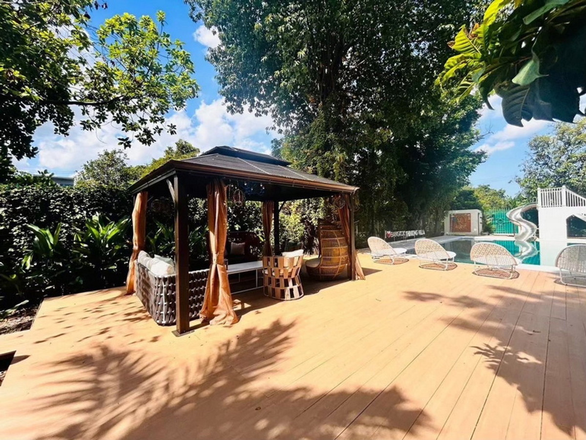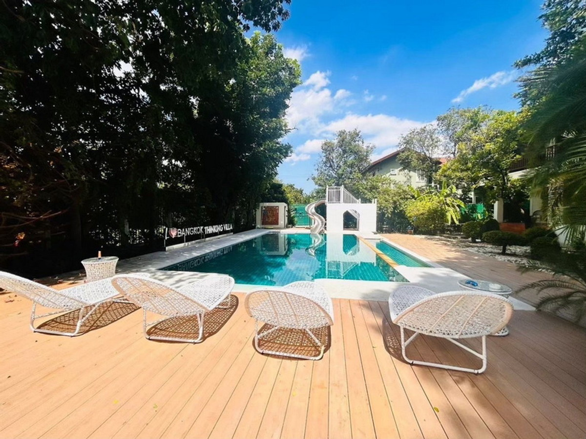 ▪️Land area : 400 sq.w. ▪️ 3 Houses with a combined total of 8 bedrooms and 7 bathrooms. ▪️using space 800sq.m. ▪️swimming pool 6m x 12m ▪️outdoor seating area ▪️separate maid's house ▪️pet-friendly House 1 (Colonial Style) - 400 sq.m. - 4 bedrooms - 4 bathrooms - 2 kitchens - fully-furnished - wide balcony House 2 (Thai Style) - 250 sq.m. - 2 bedroom with bathtub - 1 living room - 1 kitchen - 2 bathrooms House 3 (Maid house) - 150 sq.m. - 2 bedroom - 1 bathroom Sukhumvit Road 3.9 km. BTS On Nut Station 4 km. Price: 59 million baht Contact: Seasons One Real Estate Suchart: Contact number Vinit: Contact number Email: Contact email