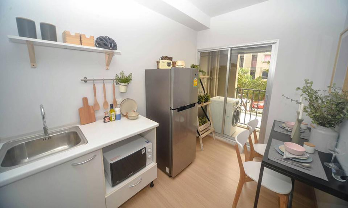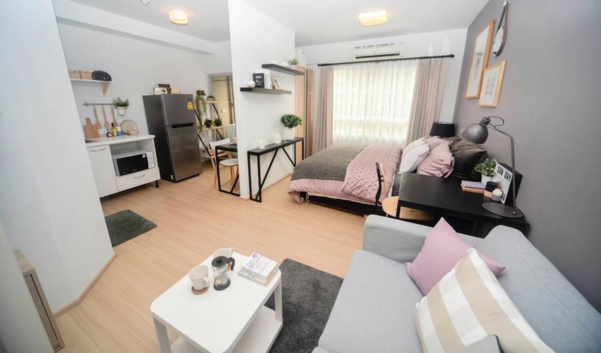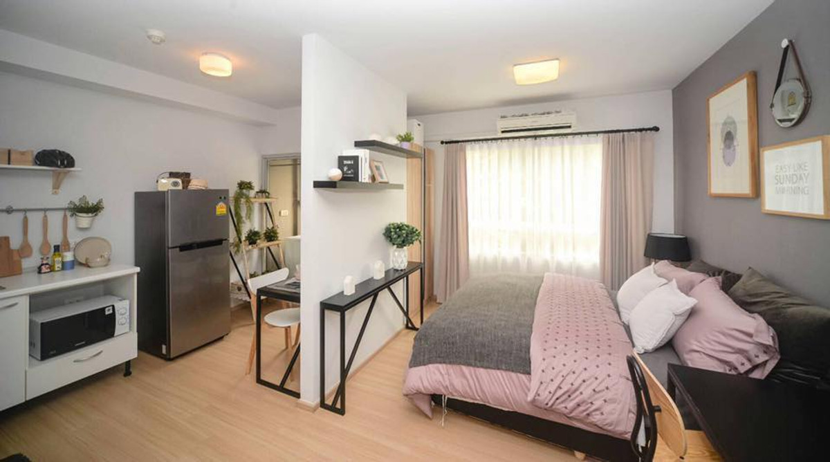 Condo for rent, Plum Samakkhi, near Dhurakij Pundit University Studio room, size 26.39 sq m., Building A, 2nd floor, with parking for 1 car Price 6,000 baht, 1 year contract (2 months deposit, 1 month in advance) Furniture, electrical appliances, decorated as in the picture Fully furnished, ready to move in - Bed - Mattress - Curtains - Wardrobe - Work desk - Air conditioner - Refrigerator - Sofa - TV with shelves - Dining table with chairs - Shelves Facilities - Fitness - Lobby with free Fiwi - Water dispenser - Soda vending machine - ATM 7 - Coin-operated washing machine - CCTV - Security guard 24 hrs. Nearby places - CJ Express opposite the condo - McDonalds (Oasis Avenue) - Lotus Express 24 hrs. (Oasis Avenue) - Thai Post Office (Oasis Avenue) - Korean Grill Shop (Oasis Avenue) - Thai Massage Shop (Oasis Avenue) - Italian Pizza (Oasis Avenue) - Talad Tai Expressway - Dhurakij Pundit University - Pantip Ngamwongwan - The Mall Ngamwongwan If interested, inquire. Or make an appointment to see the room call. Contact number Line BKK8789