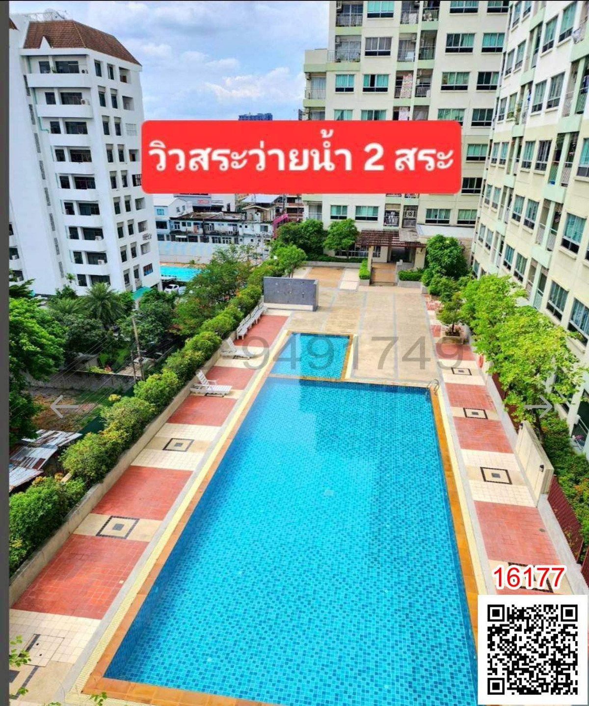 Condo for rent, Lumpini Ville Ramkhamhaeng, 2 bedrooms, Building B, pool view.