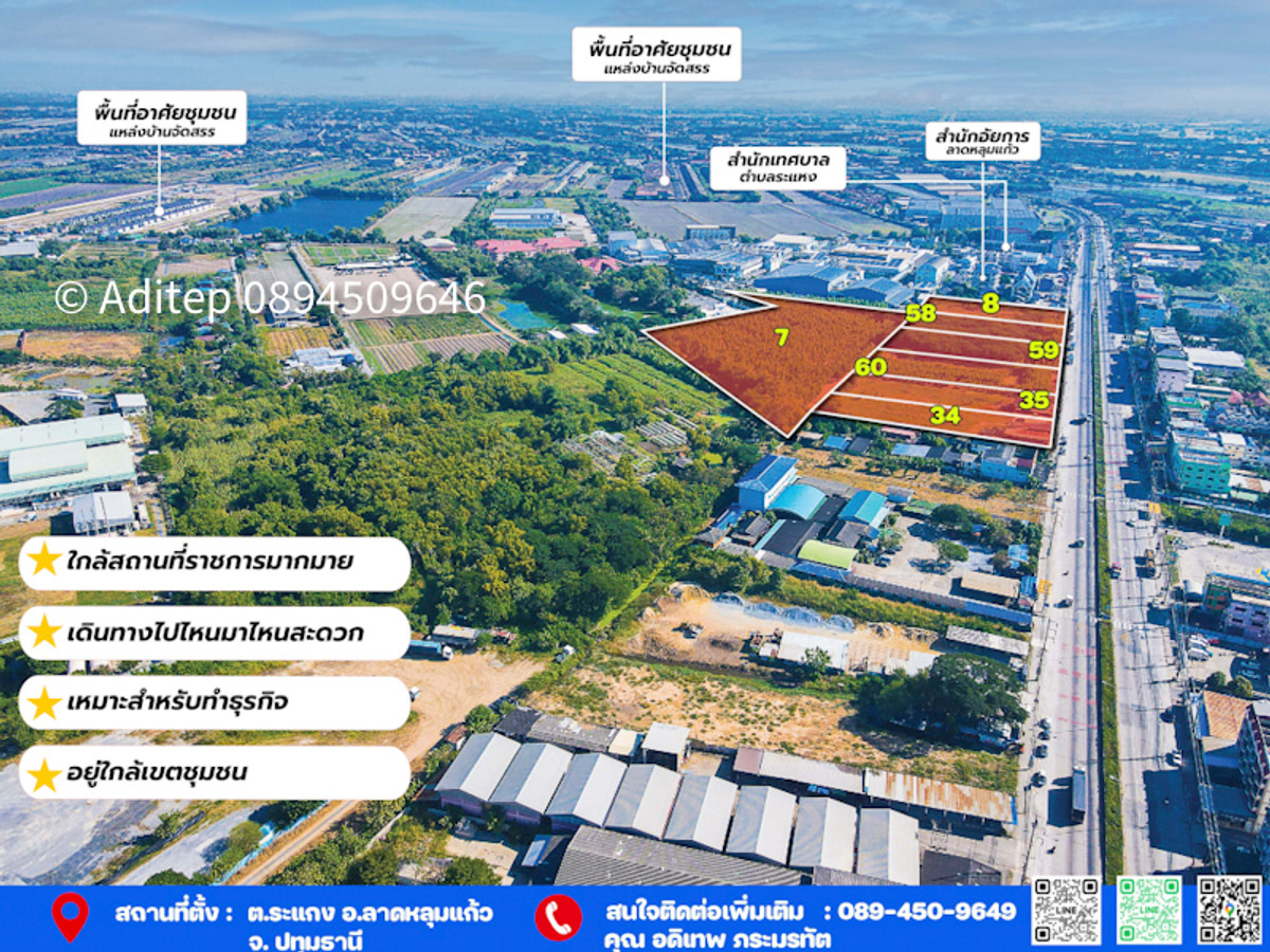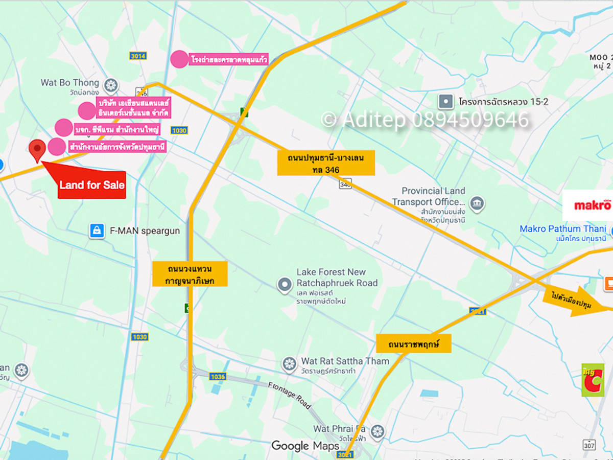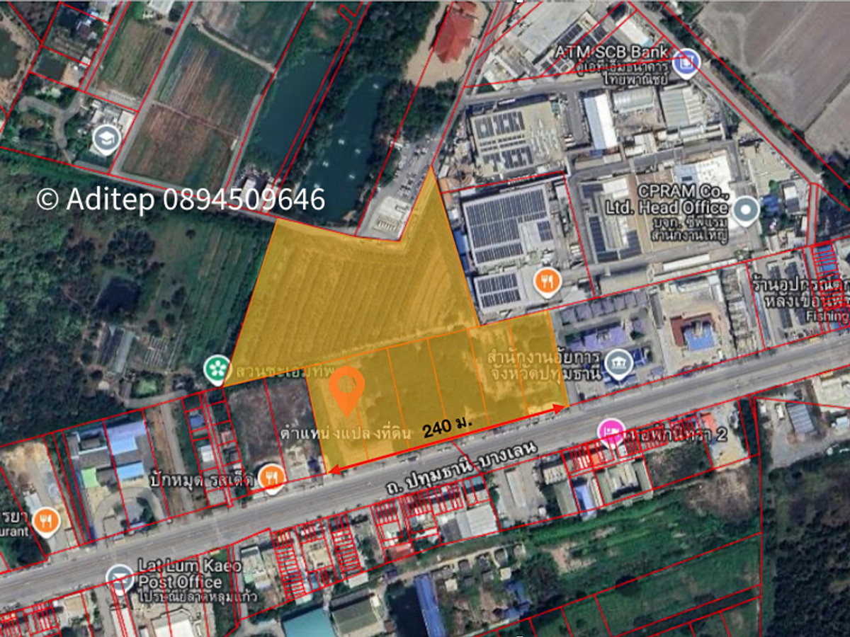 Land for sale, Lat Lum Kaeo, 30 rai, next to Road 346 Pathum Thani-Bang Len. Next to Lat Lum Kaeo Prosecutors Office, CPRAM Company Head Office, suitable for building a factory/village Property ID: M11533 --- VDO: https://youtu.be/dLaDwuQlSGg --- Location: Pathum Thani-Bang Len Road (Highway 346), Rahaeng Subdistrict, Lat Lum Kaeo District, Pathum Thani Province Plot coordinates: https://maps.app.goo.gl/TQ7pGMP4vsezStUF8 Property type: Vacant land Land size: **30 rai 378.75 square wa** (12,378.75 sq m.) Width next to main road: approximately **240 meters** Road in front of the plot: Pathum Thani–Bang Len Road (Highway 346) Land condition: large plot of land, beautiful shape, suitable for development Documents of rights: Land title deed ready for transfer Pink city plan, community type land --- **For sale 618,937,500 baht** (50,000 baht per square wa) Transfer fee is paid in half --- **Features:** - Land **directly next to the main road** supports trucks, trailers and logistics systems - Next to **Pathum Thani Provincial Attorneys Office**- Near **Head office of CPRAM Co., Ltd.** - Surrounded by communities, factories, and government offices - Convenient transportation, connecting to Ratchaphruek Road. Kanchanaphisek Road (Western Ring) quickly - High potential zone Suitable for commercial and industrial development --- ## **Suitable for development** ### **🔹 Industrial group / factory** - Large industrial factory - Warehouse / Warehouse - Distribution center (Distribution Center)- Food Factory / Processing Factory - Logistics and Transportation Center ### **🔹 Low-rise project developer group** - Low-rise housing project - Mixed-use project - Housing project to support workers and executives - Land ownership for future development --- ## **Investment potential** - Industrial location continues to expand - Large plot of land next to the main road. **Very hard to find in this zone** - Suitable for investors who want to develop large projects in the long term - High added value from infrastructure development in the Pathum Thani area --- For further details, contact Mr. Adithep Paramonthat Real estate brokerage professional qualifications, level 5 Realty One Estate (Thailand) Co., Ltd. (affiliated with the Thai Real Estate Brokers Association) Tel: Contact number LINE: @aditep.r1 or http://line.me/ti/p/@aditep.r1 email: Contact email WhatsApp: Contact number Facebook: [www.facebook.com/ArchangelProperty](http://www.facebook.com/ArchangelProperty) Website: [http://www.archangelproperty.com](http://www.archangelproperty.com/) #Land next to the main road. #Pathum Thani land #Land Lat Lum Kaeo #Bang Len land #Pathum Thani Bang Len Road #Highway 346 #Industrial land #Land to build a factory #purple land #Land for investment #Large plot of land #Land for project #allocated land #Horizontal land # Land next to a 10 lane road #Logistics land #warehouse land #Land near the settlement #Land near the city #High potential land #LandForSaleThailand #IndustrialLandThailand #LandPathumthani #FactoryLand #RealEstateInvestment