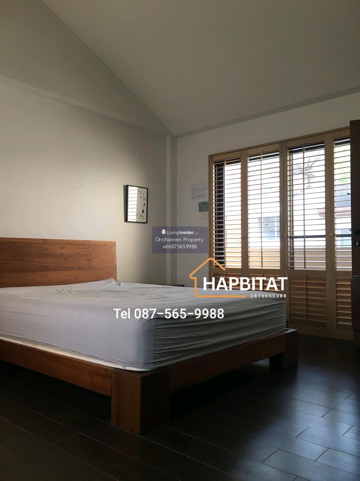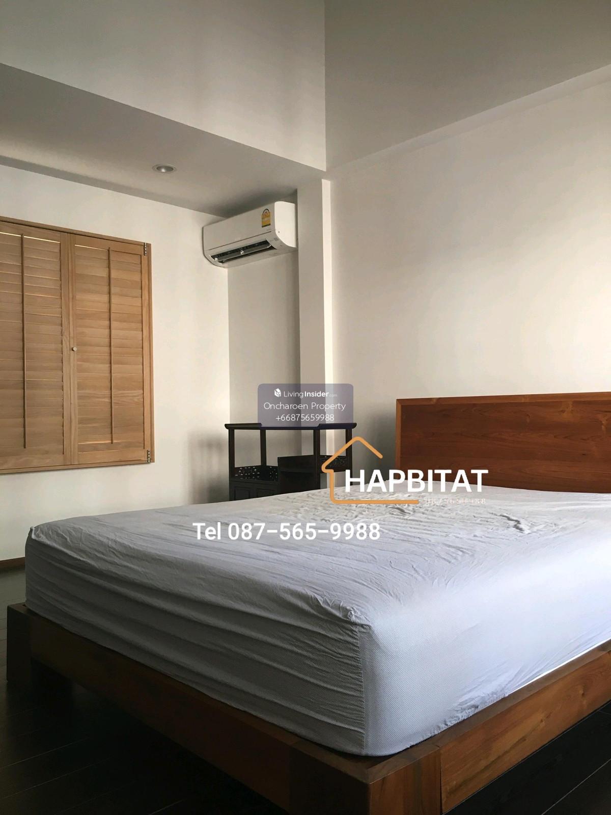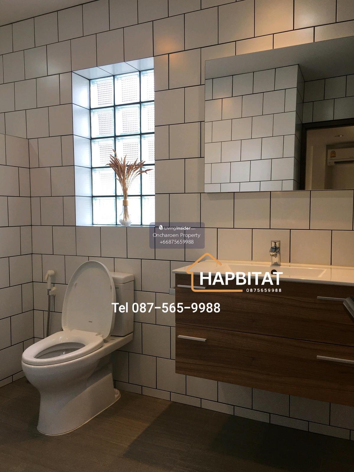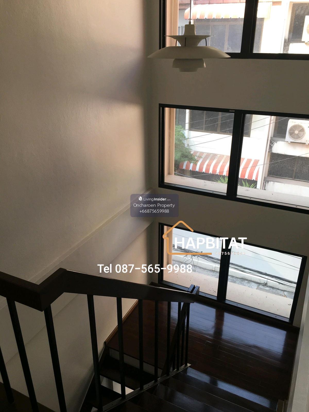 For Rent: Home Office/Townhouse, Phrom Phong (600m from BTS Phrom Phong) 3-story building, 28 sq.wah land area 200 sq.m. usable area 4 bedrooms, 3 bathrooms, and 1 toilet Living room with small balcony Kitchen and maid's room 1 indoor parking space, 1 outdoor parking space Partially furnished New air conditioners Security system Company registration allowed Suitable for residential or home office use *** No Airbnb businesses *** Small pets allowed Rent: 110,000 THB/ month Minimum 2-year lease 2-month security deposit + 1-month advance rent Please contact Khun Boub: Tel Contact number Line ID: @hapbitat Whatsapp: Contact number