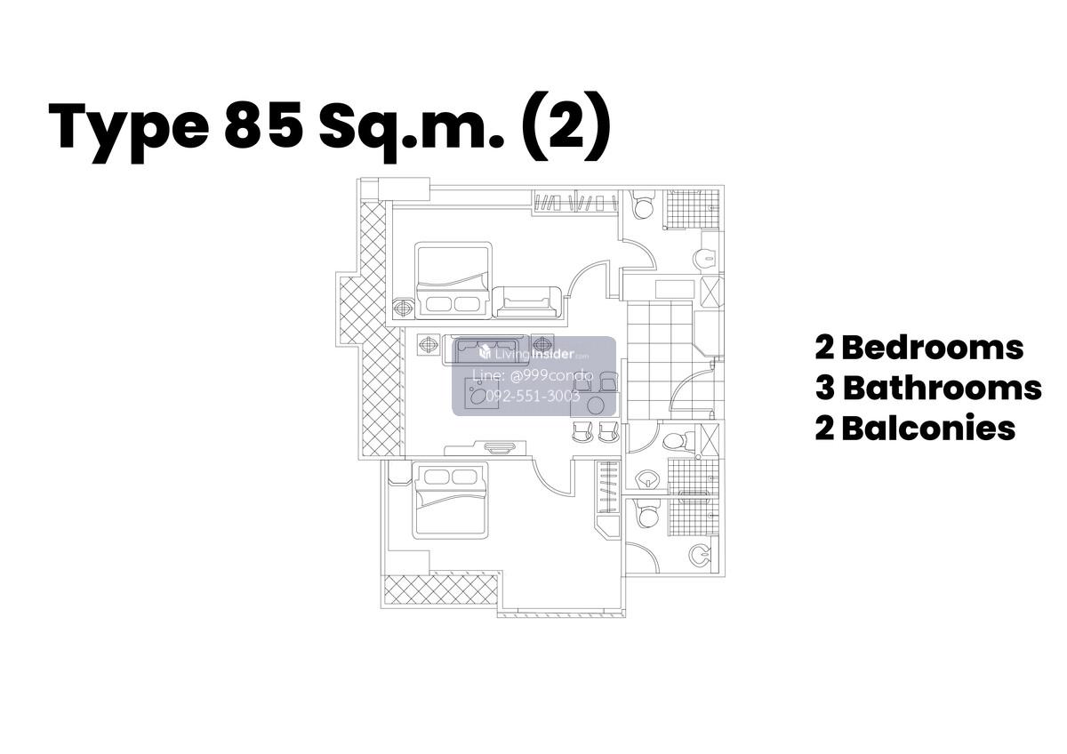 For more information or to schedule a viewing, please contact: Phone: Contact number (Kwan) WhatsApp & WeChat: Contact number Line ID: @999condo Room details - 2 bedrooms, 3 bathrooms - Area 85 sq