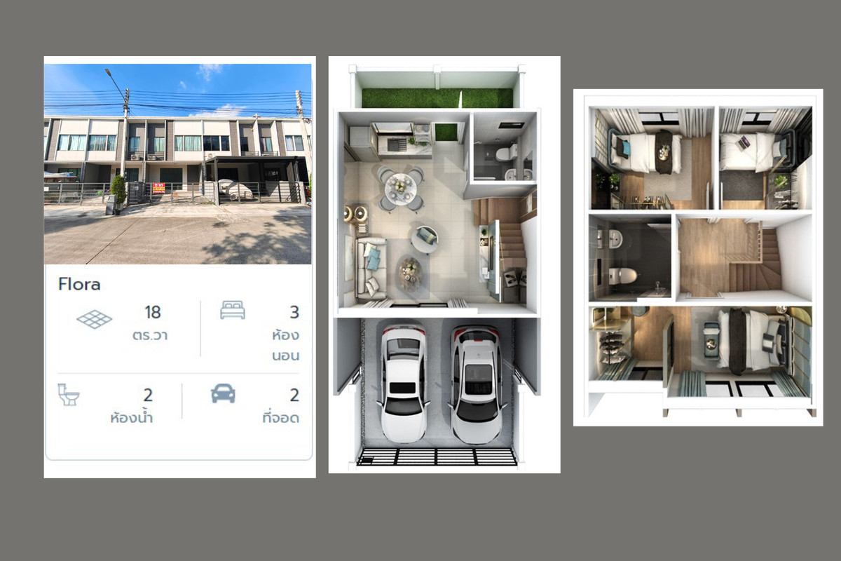 Pleno Rangsit Klong 4 - Wongwaen 🏡 Townhome for sale, Pleno Rangsit Klong 4 - Wongwaen 💰 Price 1.95 million baht 2-story townhome, width 5.5 m. 📐 Land size 18.3 sq m. | Usable area 106 sq m. 🛏 3 bedro