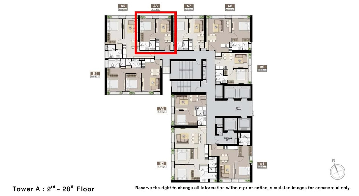 One Bedroom (Type A6), area 34.31 sq m, north, garden view, easy on the eyes, parents of young children There is a special deal ^^