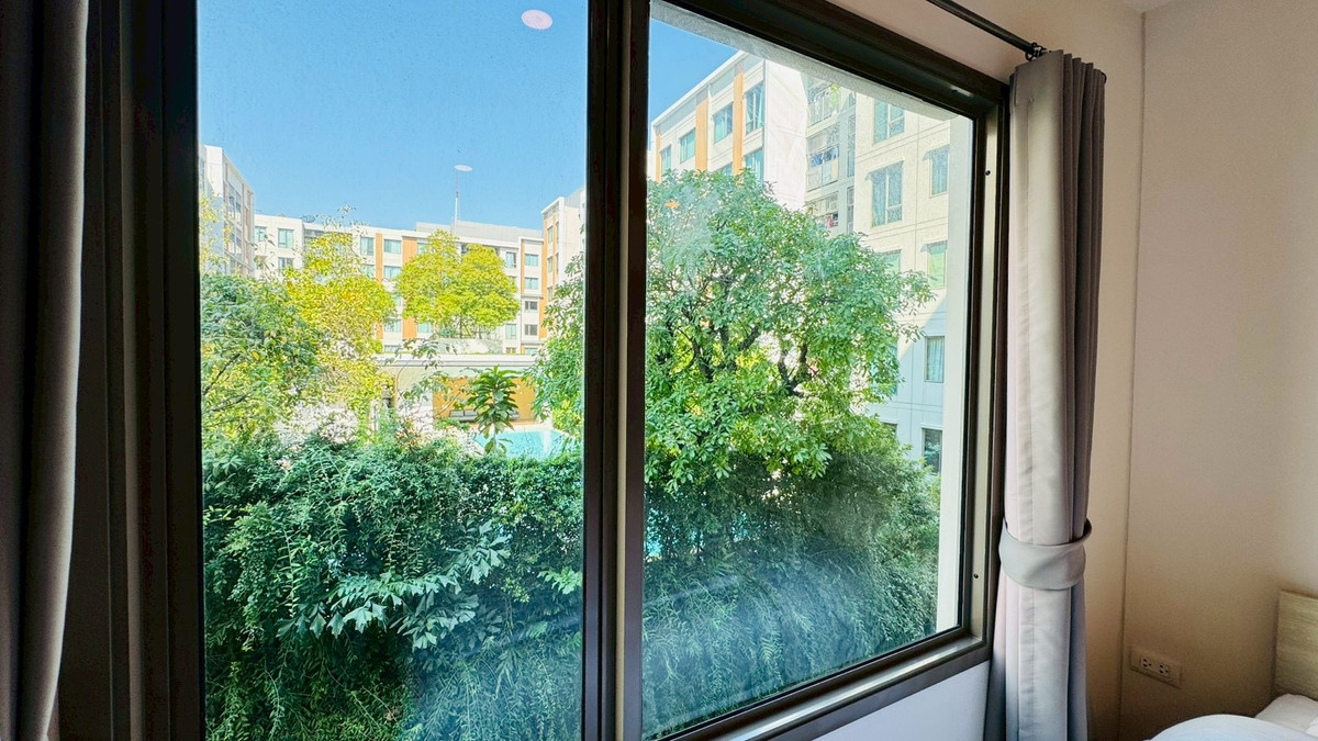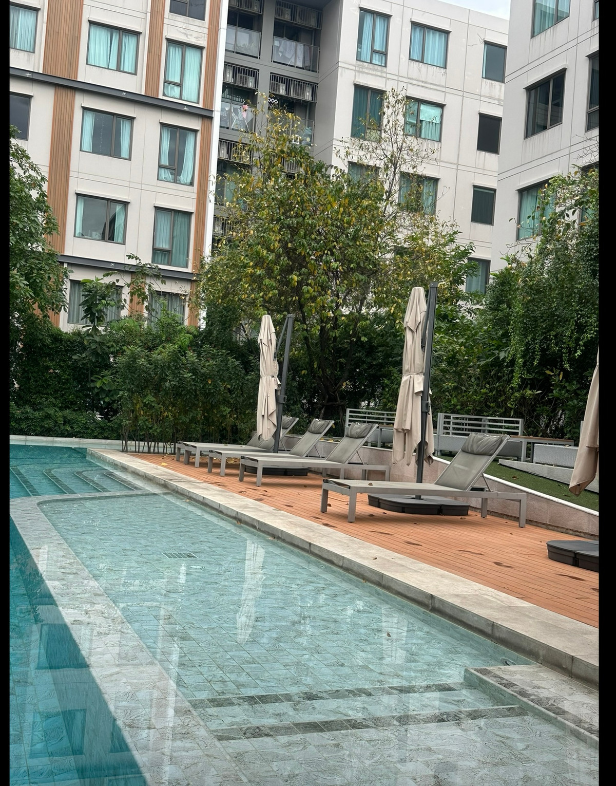 🌹ขนาดห้อง 35 ตรม 1ห้องนอน 1ห้องน้ำ ชั้น4 วิวสระว่ายน้ำ เฟอร์+เครื่องใช้ไฟฟ้าครบ พร้อมหิ้วกระเป๋า เข้าอยู่ได้ทันที 🍁ตบแต่งครบ แอร์ Tv ตู้เย็น เครื่องทำน้ำอุ่น เครื่องซักผ้า ไมโครเวฟ เตาไฟฟ้า พร้อมเครื่