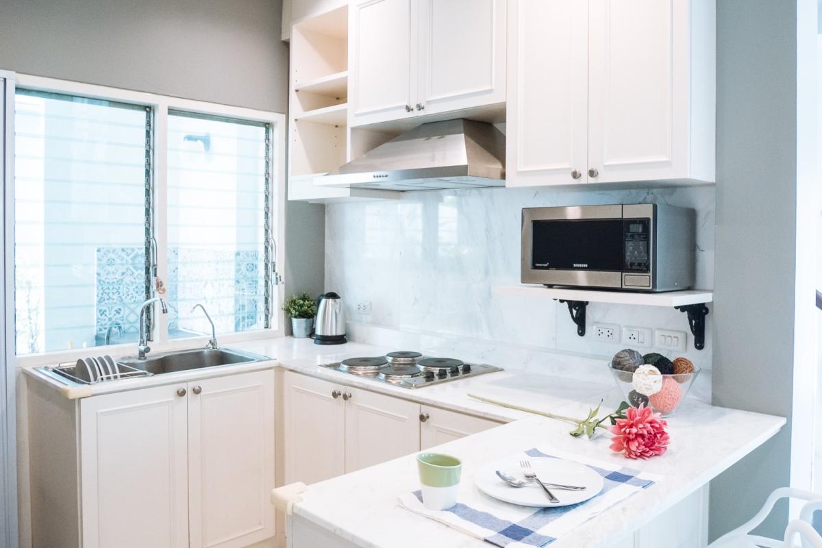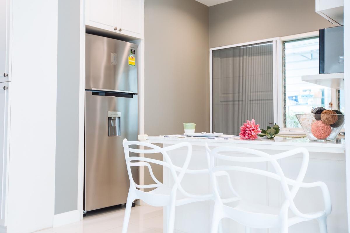 Kaset-Nawamin Road, Chorakhe Bua Subdistrict, Bang Khen District, Bangkok Prime location near the city, surrounded by a full range of amenities. Selling price: 11,500,000 baht Thai name | Transfer fees and taxes split 50/50 Property Details Land area: 56 sq.wa (224 sq.m.) 2-story house 3 bedrooms 4 bathrooms 1 maid's room with ensuite bathroom Kitchen Spacious living room Parking Garden surrounding the house Fully furnished and ready to move in Facilities: Fitness center Swimming pool Security system Playground Nearby Places: Kasetsart University Sripatum University Lertlah International School Central Ladprao The Crystal CDC Nawamin City Avenue Festival Walk